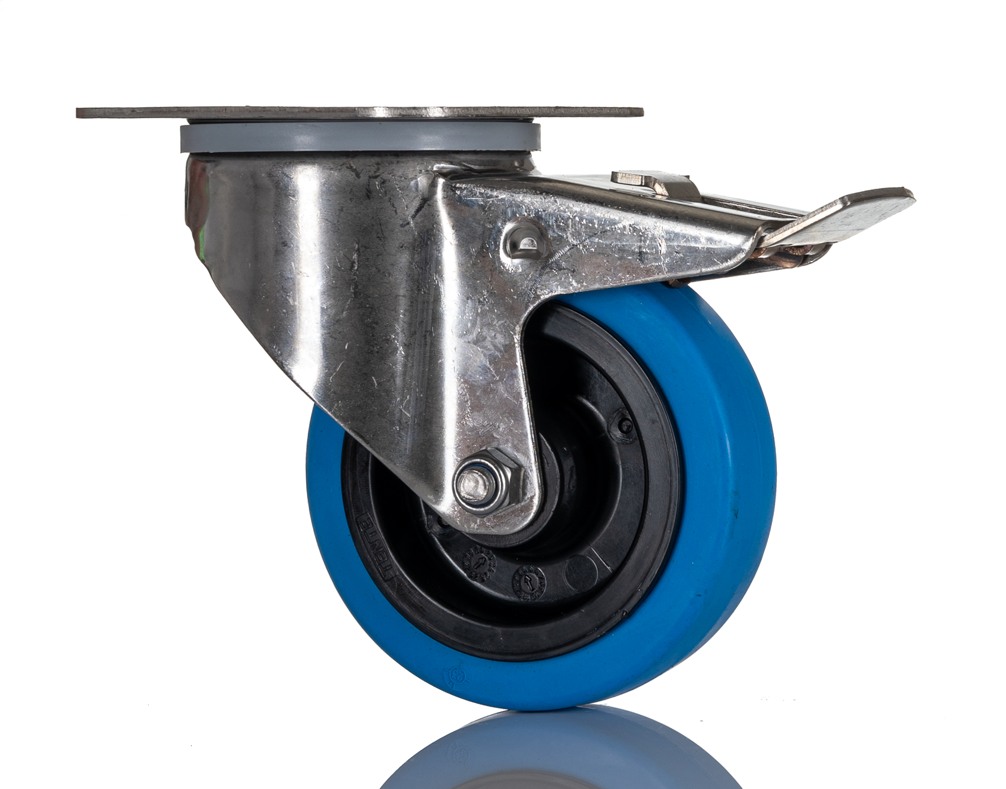 This is Swivel Castor 160kg manufactured by Tente. The manufacturer part number is 8477UFD100P62. The tyre of the product is made up of elastic material . Moreover, its fixing plate dimensions are 105 x 85mm . It has approximately 9mm fixing hole size . The product is available in plate configuration. It includes brake yes . It has a typical 80 x 60mm fixing centres . Moreover, it has 128mm of overall height. It can holds up to 160kg load capacity. It is created for heavy duty weight class . The product has a roller bearing type hub bearing . It has a wheel about 34mm in width . Its wheel diameter is about 100mm . Its hub is made using polyamide material . Allows braked swivel rotation. Additionally, it includes 4 fixing holes .