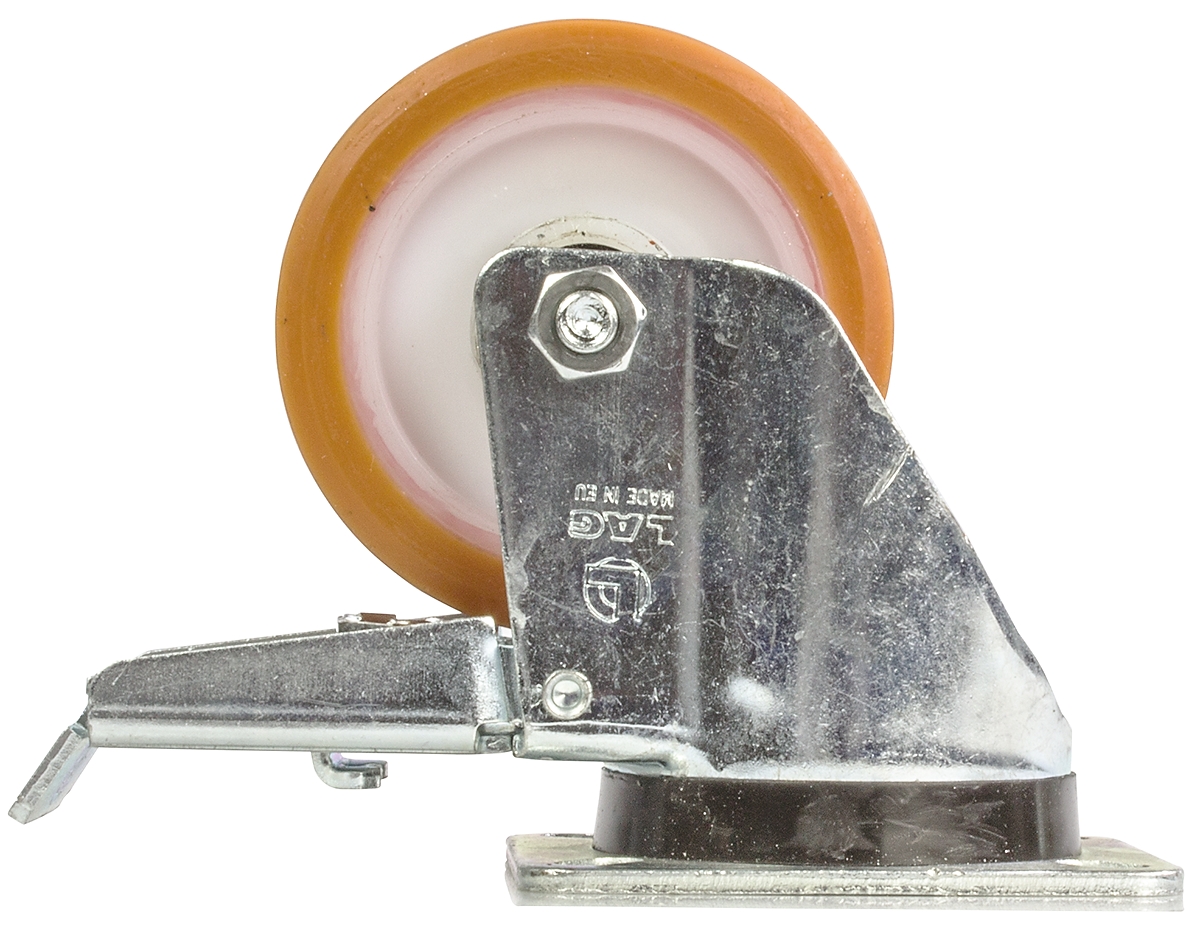 This is Swivel Castor 200kg manufactured by LAG. The manufacturer part number is 19878 FR. The tyre of the product is made up of polyurethane material . Moreover, its fixing plate dimensions are 105 x 85mm . It has approximately 8mm fixing hole size . The product is available in plate configuration. It includes brake yes . It has a typical 80 x 60mm fixing centres . Moreover, it has 138mm of overall height. It can holds up to 200kg load capacity. The product also features robust zinc plated steel housing material. It is created for heavy duty weight class . The product has a roller bearing type hub bearing . It has a wheel about 30mm in width . Its wheel diameter is about 100mm . Its hub is made using nylon material . Allows braked swivel rotation. Additionally, it includes 4 fixing holes .