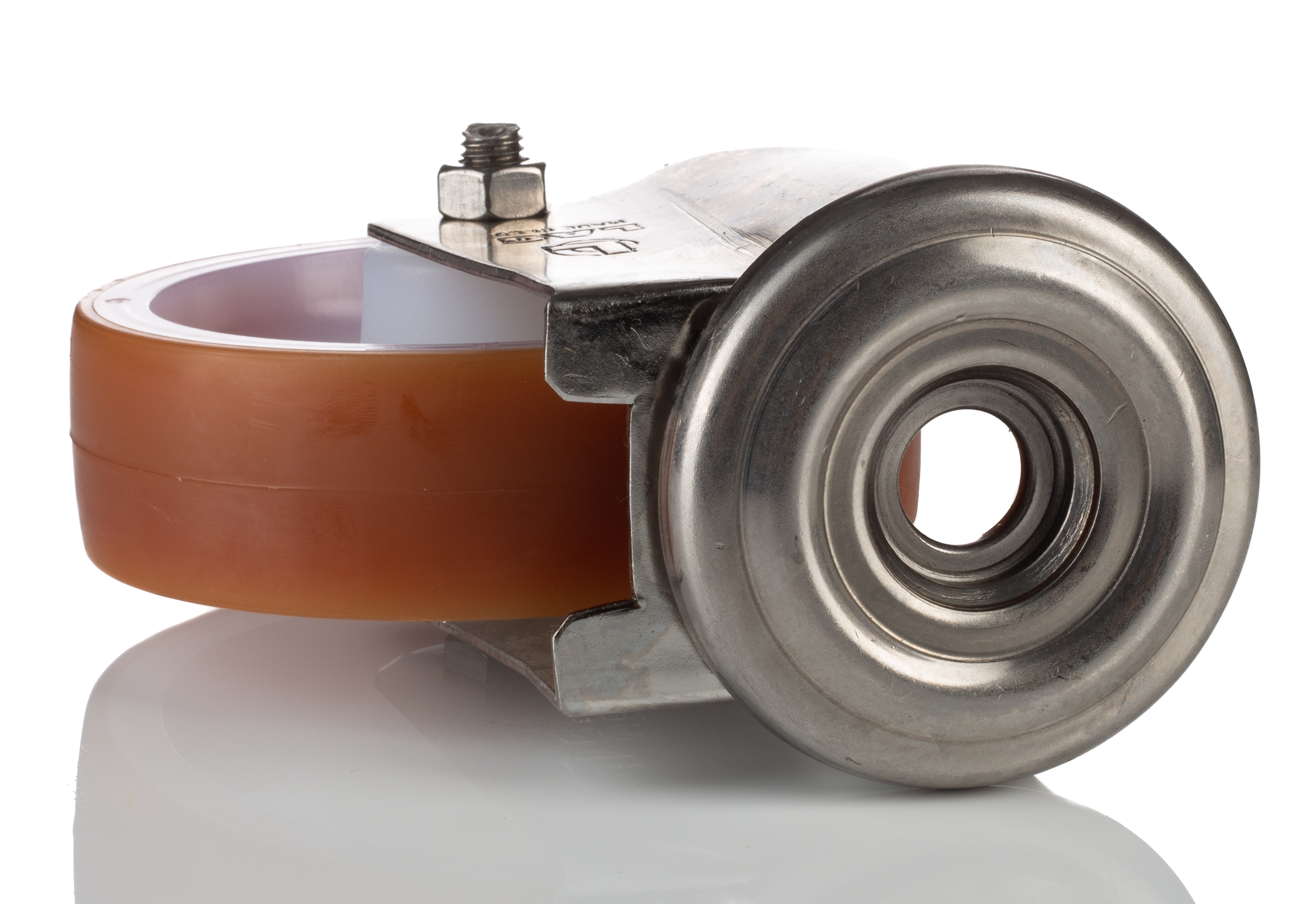 This is Stem Swivel Castors 150kg PUR tyres manufactured by LAG. The manufacturer part number is 21230 HB. The tyre of the product is made up of polyurethane material . It has approximately 12mm fixing hole size . The product is available in bolt hole configuration. It includes brake no . Moreover, it has 128mm of overall height. It can holds up to 150kg load capacity. The product also features robust stainless steel housing material. It is created for medium duty weight class . The product has a plain bore type hub bearing . It has a wheel about 30mm in width . Its wheel diameter is about 100mm . Its hub is made using polyamide material . Allows swivel rotation. Additionally, it includes 1 fixing holes .