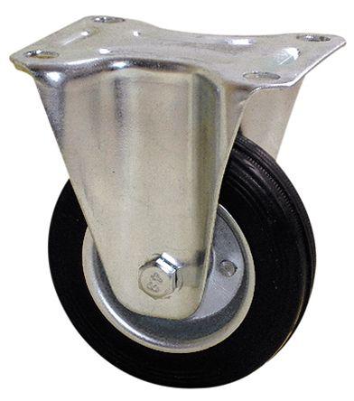 This is Fixed Castor Wheel 125daN manufactured by Guitel. The manufacturer part number is 5160520. The tyre of the product is made up of rubber material . Moreover, its fixing plate dimensions are 105 x 80mm . It has approximately 9mm fixing hole size . The splendid features of the product include impact resistant, quiet operation. The product is available in plate configuration. It includes brake yes . It has a typical 80 x 60mm fixing centres . Moreover, it has 158mm of overall height. It can holds up to 125kg load capacity. Applications Information involves industrial. It is created for medium duty weight class . The product has a roller bearing type hub bearing . It has a wheel about 38mm in width . Its wheel diameter is about 125mm . Its hub is made using steel material . Allows fixed rotation. Additionally, it includes 4 fixing holes .