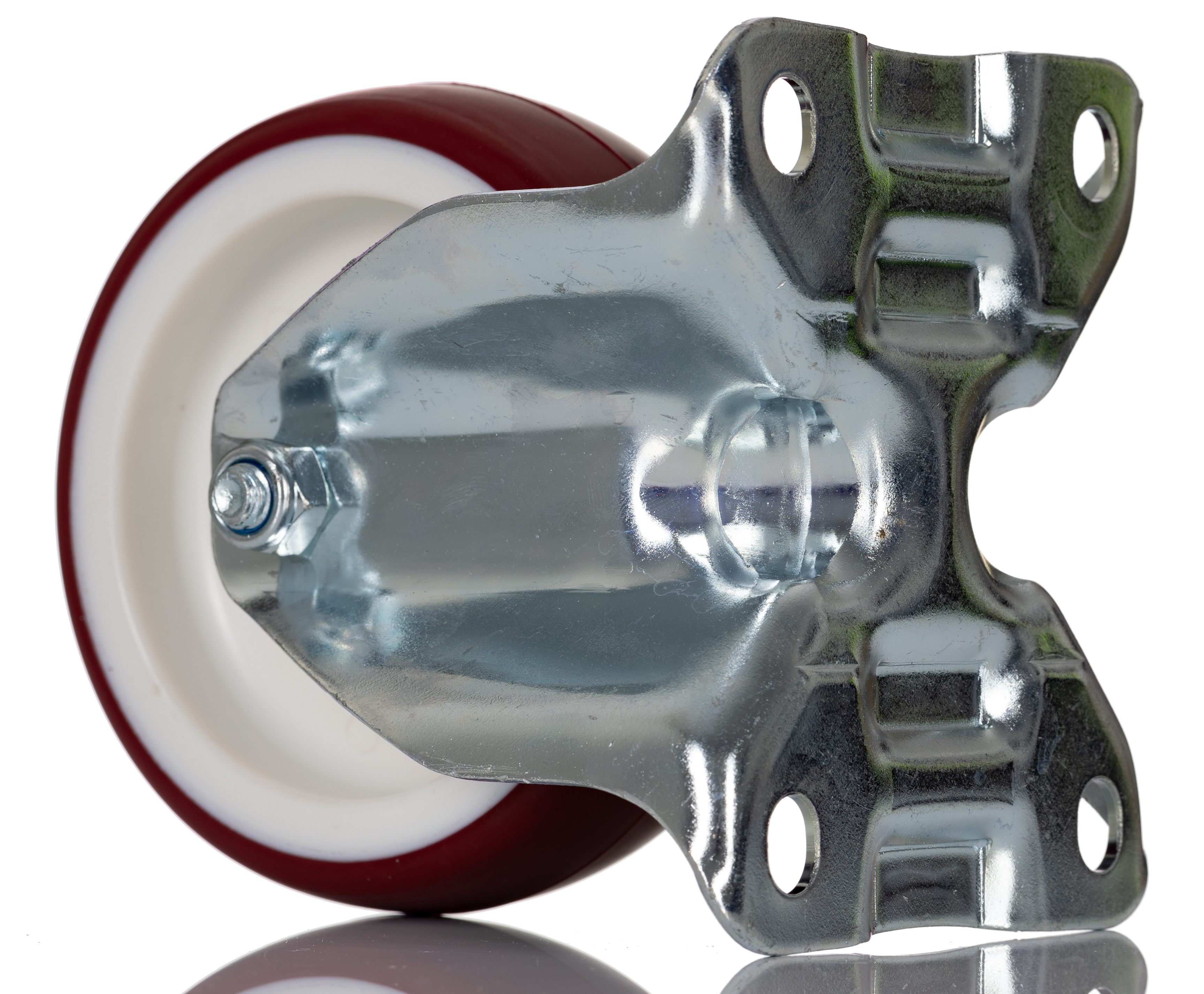 This is Fixed Castor Wheel 150kg manufactured by Tente. The manufacturer part number is 3478UAR100P62 red. The tyre of the product is made up of rubber material . Moreover, its fixing plate dimensions are 103 x 85mm . It has approximately 9mm fixing hole size . The product is available in plate configuration. It includes brake no . It has a typical 60 x 80 x 77mm fixing centres . Moreover, it has 128mm of overall height. It can holds up to 150kg load capacity. It is created for heavy duty weight class . The product has a roller bearing type hub bearing . It has a wheel about 32mm in width . Its wheel diameter is about 100mm . Its hub is made using polypropylene material . Allows fixed rotation. Additionally, it includes 4 fixing holes .