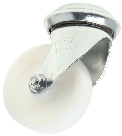 This is Stem Swivel Castors 110kg Nylon tyres manufactured by Flexello. The manufacturer part number is RS_420-3843. The tyre of the product is made up of nylon material . The splendid features of the product include non-marking. The product is available in single bolt configuration. Moreover, it has 104mm of overall height. It can holds up to 110kg load capacity. Applications Information involves industrial. It is created for medium duty weight class . The product has a plain bore type hub bearing . It has a wheel about 25mm in width . Its wheel diameter is about 75mm . Its hub is made using nylon material . Allows swivel rotation.