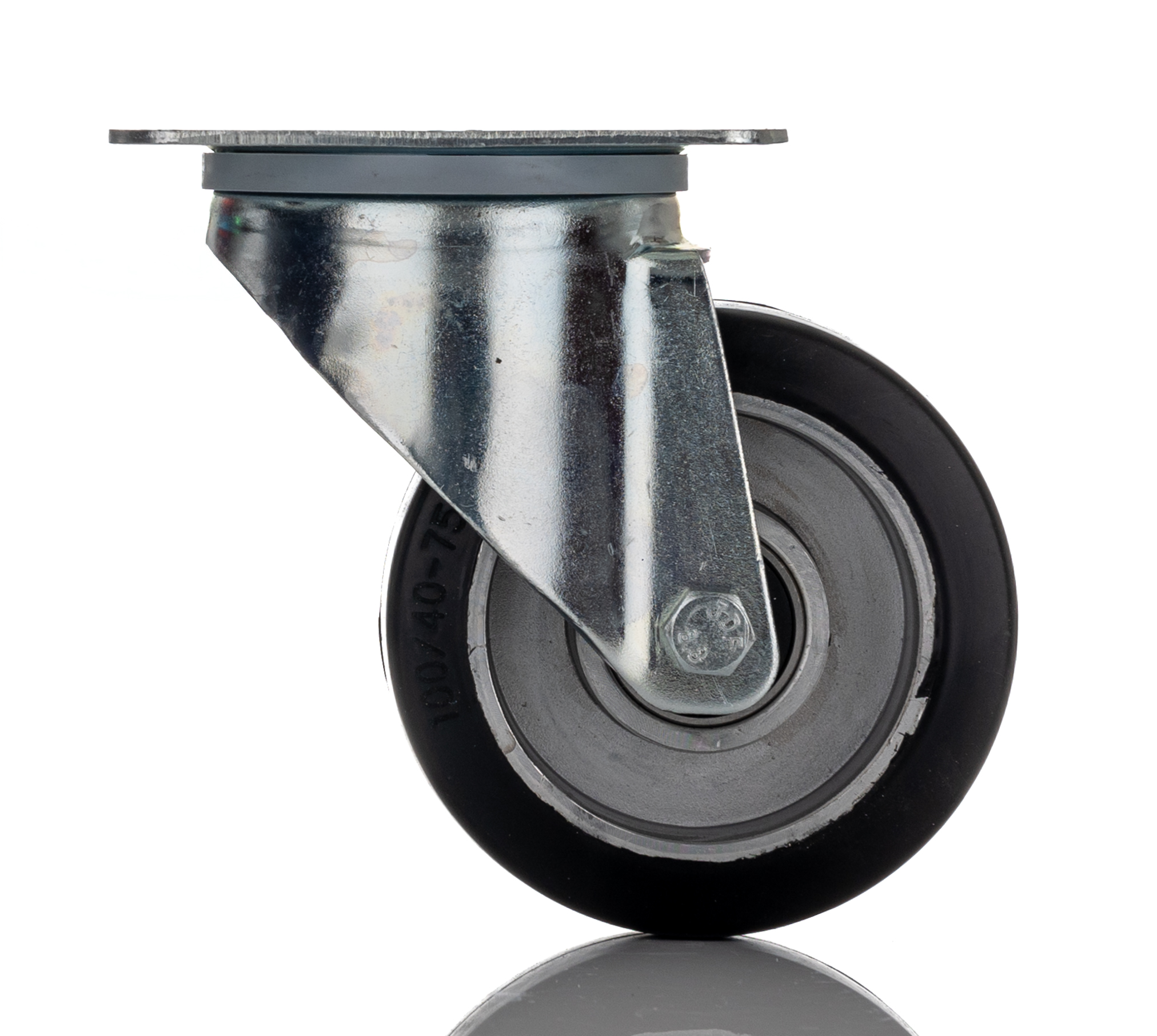 This is Swivel Castor 150kg manufactured by RS Pro. The manufacturer part number is 196-4999. The tyre of the product is made up of rubber material . Moreover, its fixing plate dimensions are 100 x 85mm . It has approximately 8.5mm fixing hole size . The product is available in plate configuration. It includes brake no . It has a typical 80 x 60mm fixing centres . Moreover, it has 132mm of overall height. It can holds up to 150kg load capacity. It is created for heavy duty weight class . The product has a ball bearing type hub bearing . It has a wheel about 40mm in width . Its wheel diameter is about 100mm . Its hub is made using aluminium material . Allows swivel rotation. Additionally, it includes 4 fixing holes .