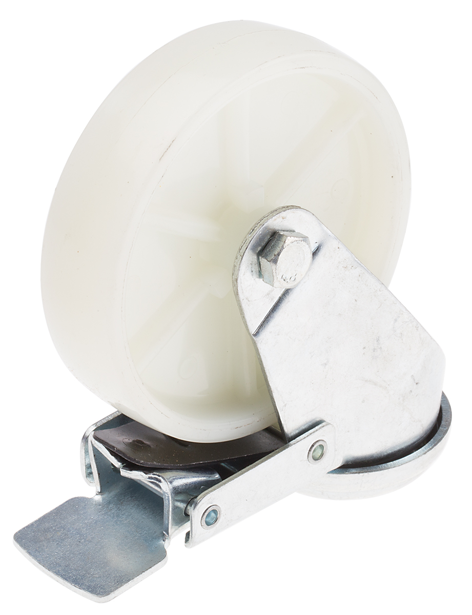 This is Stem Swivel Castors 80kg PP tyres manufactured by RS Pro. The manufacturer part number is 828-6331. The tyre of the product is made up of pp material . The product is available in single bolt configuration. It includes brake yes . Moreover, it has 135mm of overall height. It can holds up to 80kg load capacity. It is created for medium duty weight class . The product has a plain bearing type hub bearing . It has a wheel about 20mm in width . Its wheel diameter is about 100mm . Allows swivel rotation.