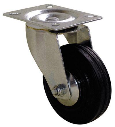 This is Swivel Castor 100daN manufactured by Guitel. The manufacturer part number is 1275102. The tyre of the product is made up of rubber material . Moreover, its fixing plate dimensions are 105 x 80mm . It has approximately 9mm fixing hole size . The splendid features of the product include quiet operation. The product is available in plate configuration. It includes brake no . It has a typical 80 x 60mm fixing centres . Moreover, it has 130mm of overall height. It can holds up to 100kg load capacity. Applications Information involves industrial. It is created for heavy duty weight class . The product has a roller bearing type hub bearing . It has a wheel about 35mm in width . Its wheel diameter is about 100mm . Its hub is made using pp material . Allows swivel rotation. Additionally, it includes 4 fixing holes .