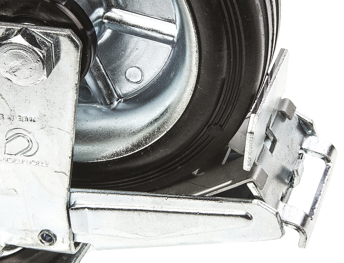 This is Swivel Castor 12278 FR 180kg manufactured by LAG. The manufacturer part number is 12278 FR. The tyre of the product is made up of rubber material . Moreover, its fixing plate dimensions are 135 x 110mm . It has approximately 10mm fixing hole size . The product is available in plate configuration. It includes brake yes . It has a typical 105 x 80mm fixing centres . Moreover, it has 196mm of overall height. It can holds up to 180kg load capacity. The product also features robust zinc plated steel housing material. It is created for medium duty weight class . The product has a roller bearing type hub bearing . It has a wheel about 45mm in width . Its wheel diameter is about 160mm . Its hub is made using steel material . Allows braked swivel rotation. Additionally, it includes 4 fixing holes .
