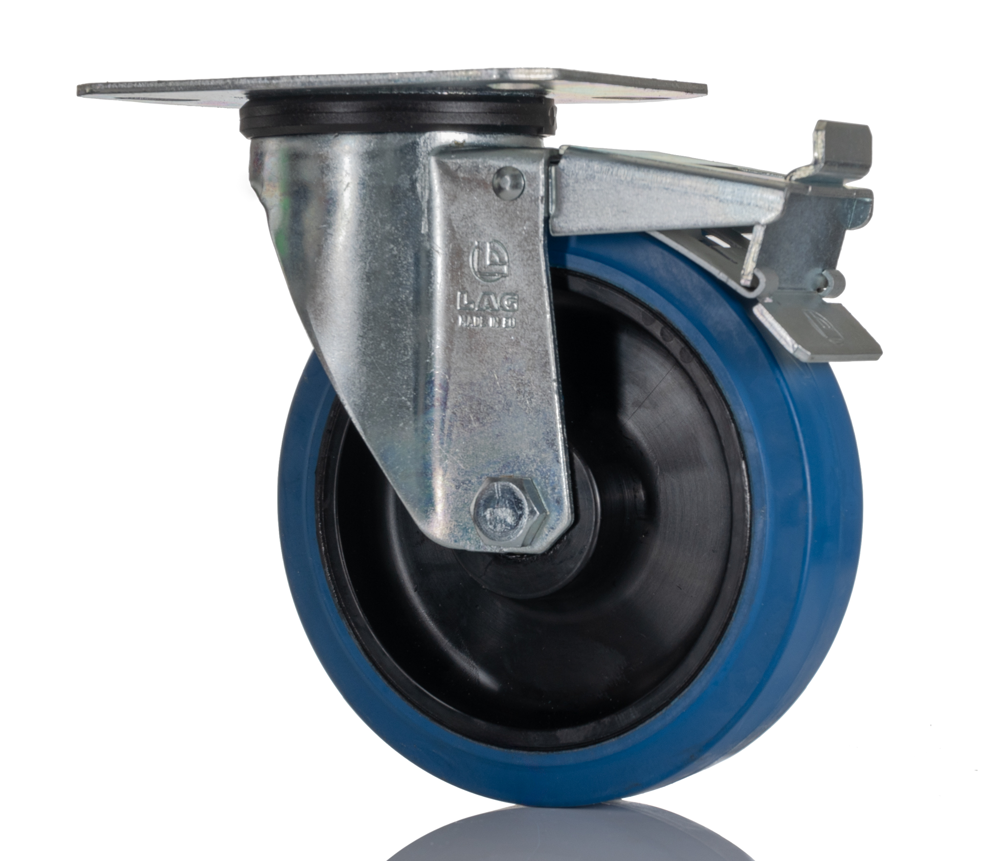 This is Swivel Castor 200kg manufactured by LAG. The manufacturer part number is 32067B FR. The tyre of the product is made up of rubber material . Moreover, its fixing plate dimensions are 110 x 135mm . It has approximately 10mm fixing hole size . The product is available in bolt hole configuration. It includes brake yes . It has a typical 80 x 105mm fixing centres . Moreover, it has 181mm of overall height. It can holds up to 200kg load capacity. The product also features robust zinc plated steel housing material. It is created for medium duty weight class . The product has a roller bearing type hub bearing . It has a wheel about 40mm in width . Its wheel diameter is about 150mm . Its hub is made using polyamide material . Allows braked swivel rotation. Additionally, it includes 4 fixing holes .