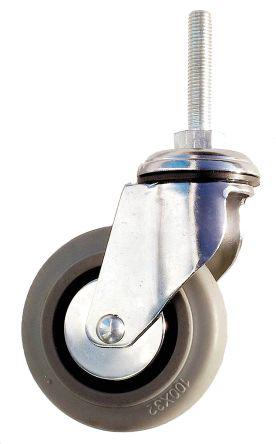This is Stem Swivel Castors 80daN Rubber tyres manufactured by Guitel. The manufacturer part number is 155311400. The tyre of the product is made up of rubber material . The splendid features of the product include non-marking, quiet operation. The product is available in threaded stem configuration. Moreover, it has 134mm of overall height. It can holds up to 80dan load capacity. Applications Information involves institutional. It is created for medium duty weight class . The product has a plain bore type hub bearing . It has a wheel about 32mm in width . Its wheel diameter is about 100mm . Its hub is made using pp material . Allows swivel rotation.