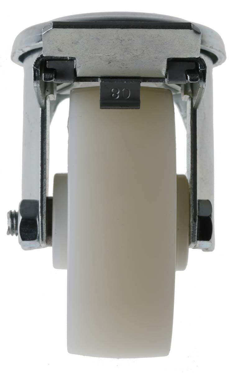 This is Stem Swivel Castors 120kg Polyamide tyres manufactured by LAG. The manufacturer part number is 18962 FR FB. The tyre of the product is made up of polyamide material . It has approximately 12mm fixing hole size . The product is available in bolt hole configuration. It includes brake yes . Moreover, it has 106mm of overall height. It can holds up to 120kg load capacity. The product also features robust zinc plated steel housing material. It is created for medium duty weight class . The product has a plain bore type hub bearing . It has a wheel about 30mm in width . Its wheel diameter is about 80mm . Its hub is made using polyamide material . Allows swivel rotation. Additionally, it includes 1 fixing holes .