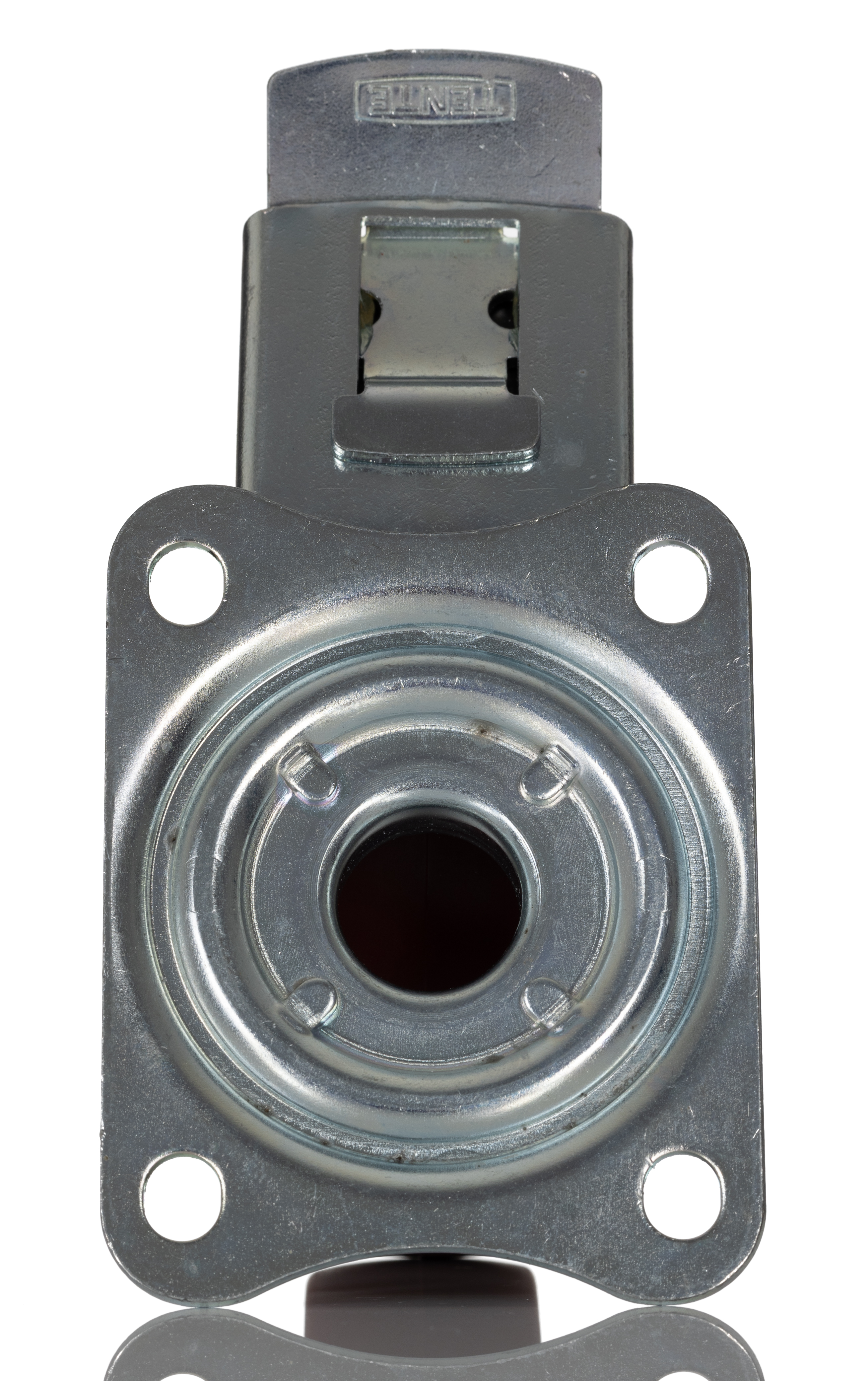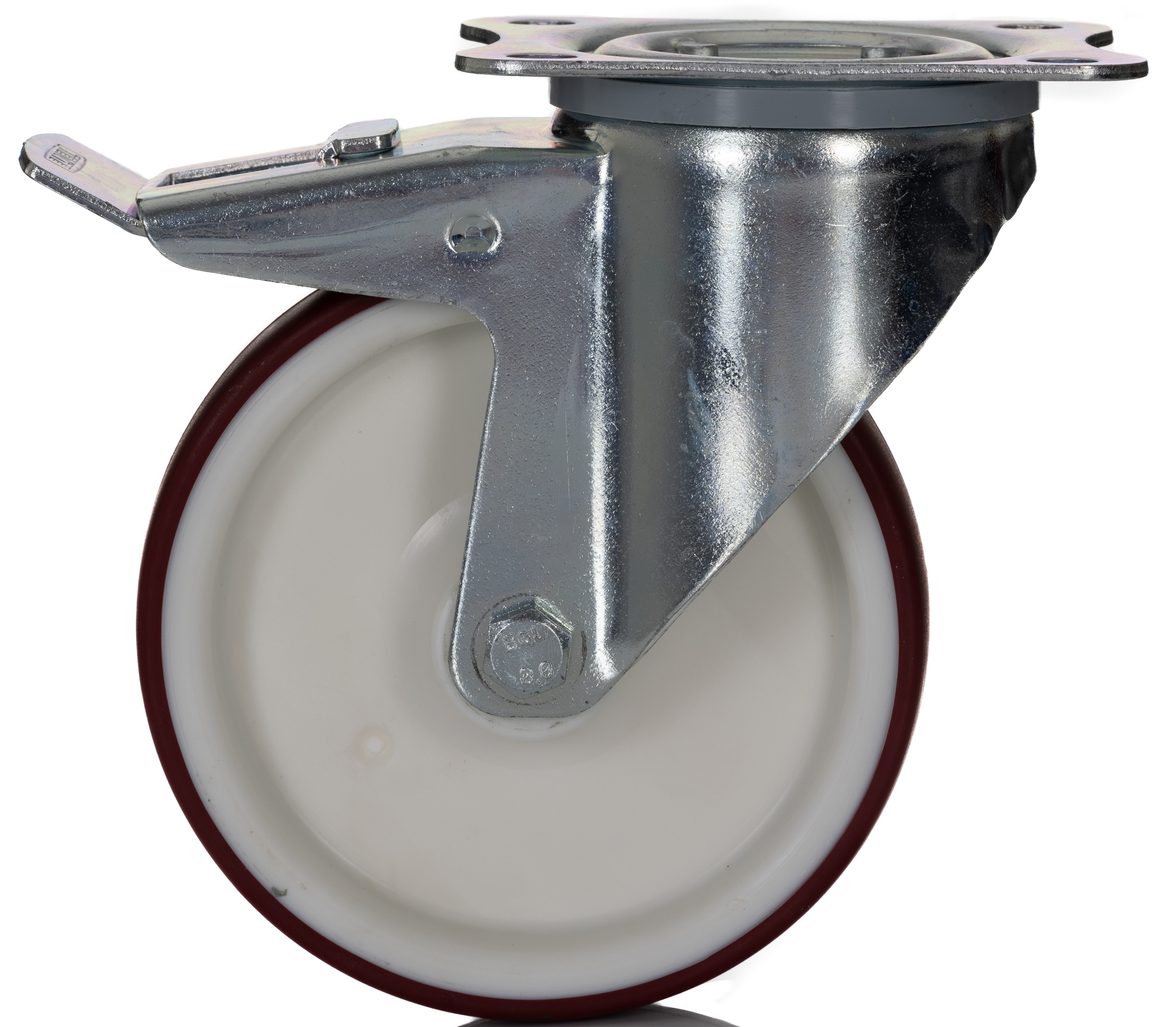 This is Swivel Castor 300kg manufactured by Tente. The manufacturer part number is 3477UAR125P62 red. The tyre of the product is made up of polyamide material . Moreover, its fixing plate dimensions are 105 x 85mm . It has approximately 9mm fixing hole size . The product is available in plate configuration. It includes brake yes . It has a typical 80 x 60mm fixing centres . Moreover, it has 155mm of overall height. It can holds up to 300kg load capacity. It is created for heavy duty weight class . The product has a roller bearing type hub bearing . It has a wheel about 32mm in width . Its wheel diameter is about 125mm . Its hub is made using polyamide material . Allows braked swivel rotation. Additionally, it includes 4 fixing holes .