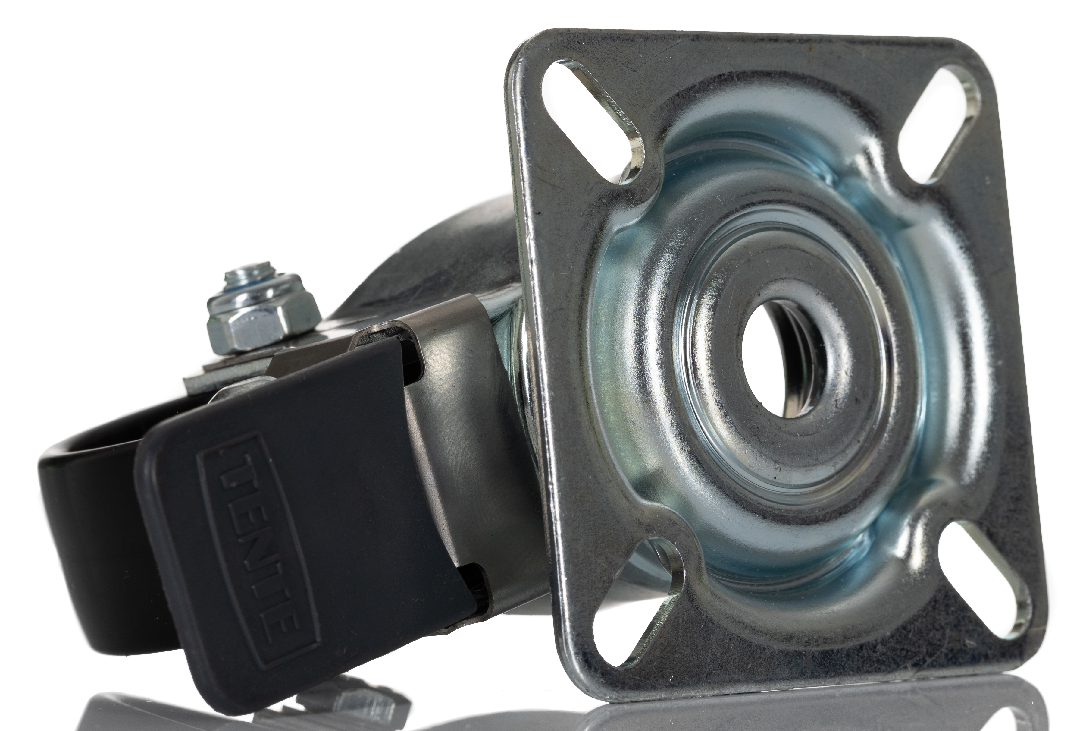 This is Swivel Castor 40kg manufactured by Tente. The manufacturer part number is 1475POO050P40. The tyre of the product is made up of pp material . Moreover, its fixing plate dimensions are 60 x 60mm . It has approximately 6.3mm fixing hole size . The product is available in plate configuration. It includes brake yes . It has a typical 48 x 38mm fixing centres . Moreover, it has 70mm of overall height. It can holds up to 40kg load capacity. It is created for light duty weight class . The product has a plain bearing type hub bearing . It has a wheel about 18mm in width . Its wheel diameter is about 50mm . Its hub is made using polypropylene material . Allows braked swivel rotation. Additionally, it includes 4 fixing holes .