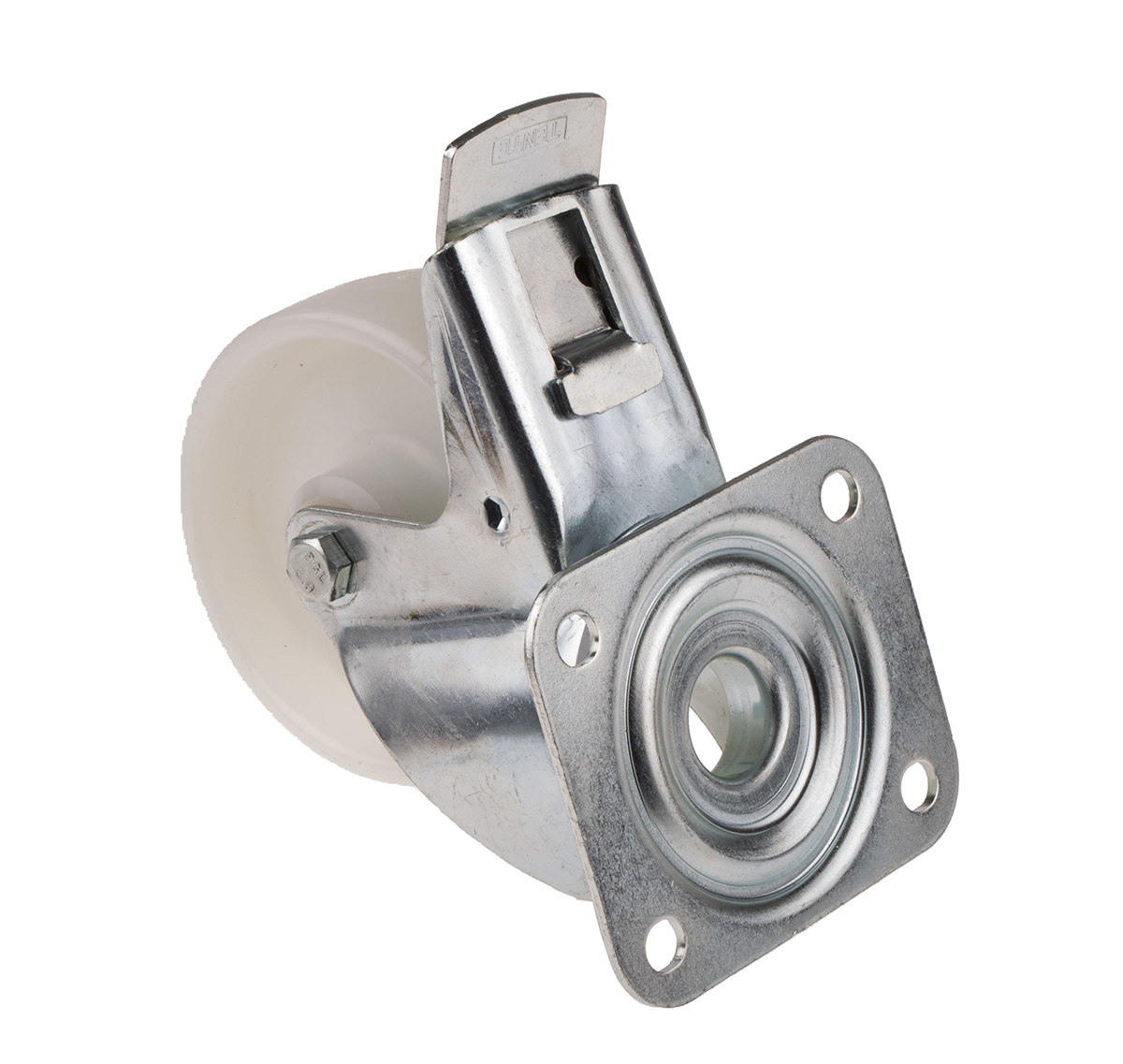 This is Swivel Castor 200kg manufactured by Tente. The manufacturer part number is 3477UOR100P62. The tyre of the product is made up of polyamide material . Moreover, its fixing plate dimensions are 105 x 85mm . It has approximately 9mm fixing hole size . The product is available in plate configuration. It includes brake yes . It has a typical 80 x 60mm fixing centres . Moreover, it has 128mm of overall height. It can holds up to 200kg load capacity. It is created for heavy duty weight class . The product has a roller bearing type hub bearing . It has a wheel about 36mm in width . Its wheel diameter is about 100mm . Its hub is made using polyamide material . Allows braked swivel rotation. Additionally, it includes 4 fixing holes .