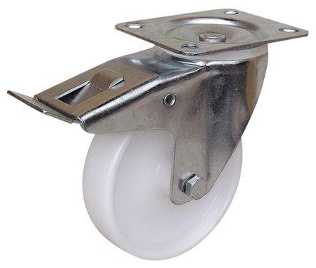 This is Guitel Swivel Plate Castor 250kg manufactured by Guitel point m. The manufacturer part number is 13510620. The product is available in plate configuration. It includes brake yes . It has a typical 105 x 80mm fixing centres . Moreover, it has 235mm of overall height. It can holds up to 250kg load capacity. It is created for heavy duty weight class . The product has a roller bearing type hub bearing . It has approximately 11mm fixing hole size . Its wheel diameter is about 150mm . Allows braked swivel rotation. Additionally, it includes 4 fixing holes .