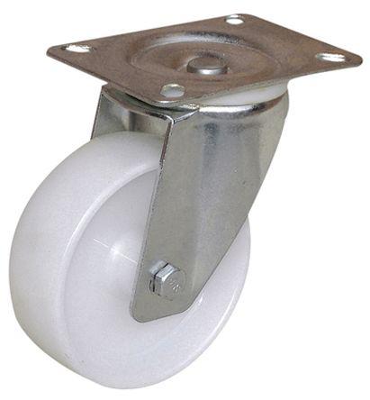 This is Guitel Swivel Plate Castor 125daN manufactured by Guitel point m. The manufacturer part number is 2161015. The tyre of the product is made up of polyolefin material . Moreover, its fixing plate dimensions are 105 x 80mm . It has approximately 9mm fixing hole size . The splendid features of the product include impact resistant, low starting resistance. It includes brake yes . It has a typical 80 x 60mm fixing centres . Moreover, it has 158mm of overall height. It can holds up to 125kg load capacity. It is created for heavy duty weight class . The product has a plain bore type hub bearing . It has a wheel about 37mm in width . Its wheel diameter is about 125mm . Its hub is made using polyolefine material . Allows swivel rotation. Additionally, it includes 4 fixing holes .