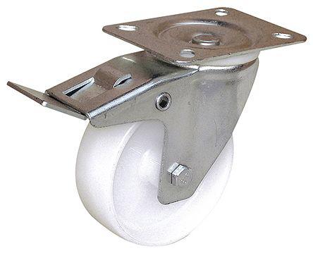 This is Guitel Swivel Castor Wheel 100kg manufactured by MPR. The manufacturer part number is 12700405. The tyre of the product is made up of polychoc material . The splendid features of the product include non-marking. It includes brake yes . Moreover, it has 130mm of overall height. It can holds up to 100kg load capacity. Applications Information involves industrial. It is created for heavy duty weight class . Its wheel diameter is about 100mm . Its hub is made using polychoc material . Allows braked swivel rotation. Additionally, it includes 4 fixing holes .