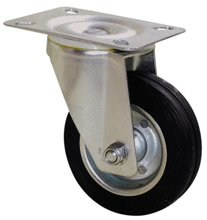 This is Swivel Castor Wheel 125kg Load Capacity 125mm Wheel Diameter manufactured by Guitel Hervieu. The manufacturer part number is 2160520. The tyre of the product is made up of rubber material . Moreover, its fixing plate dimensions are 105 x 80mm . It has approximately 9mm fixing hole size . The product is available in plate configuration. It includes brake no . It has a typical 80 x 60mm fixing centres . Moreover, it has 158mm of overall height. It can holds up to 125kg load capacity. The product also features robust galvanised steel housing material. It is created for medium duty weight class . The product has a roller bearing type hub bearing . It has a wheel about 38mm in width . Its wheel diameter is about 125mm . Its hub is made using steel material . Allows swivel rotation. Additionally, it includes 4 fixing holes .
