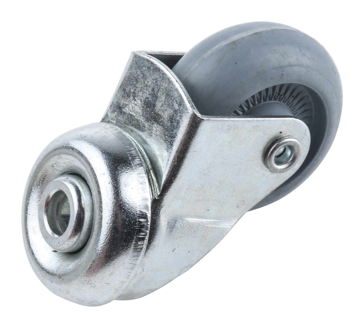 This is Swivel Castor Wheel 20daN Load Capacity 32mm Wheel Diameter manufactured by Guitel Hervieu. The manufacturer part number is 311407. The tyre of the product is made up of rubber material . It has approximately 6.5mm fixing hole size . The product is available in single bolt configuration. It includes brake no . Moreover, it has 46mm of overall height. It can holds up to 20kg load capacity. The product also features robust zinc plated steel housing material. It is created for light duty weight class . The product has a plain bore type hub bearing . It has a wheel about 14mm in width . Its wheel diameter is about 32mm . Its hub is made using polypropylene material . Allows swivel rotation. Additionally, it includes 1 fixing holes .