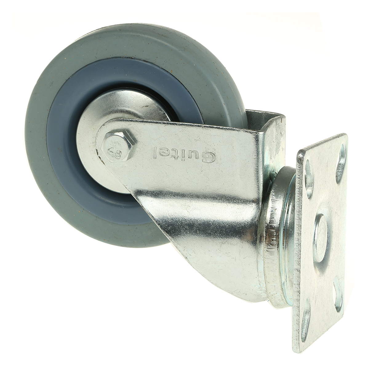 This is Swivel Castor Wheel 60kg Load Capacity 75mm Wheel Diameter manufactured by Guitel Hervieu. The manufacturer part number is 66707. The tyre of the product is made up of rubber material . Moreover, its fixing plate dimensions are 65 x 65mm . It has approximately 8.5mm fixing hole size . The product is available in plate configuration. It includes brake no . It has a typical 53 x 43.5mm fixing centres . Moreover, it has 102mm of overall height. It can holds up to 60kg load capacity. The product also features robust zinc plated steel housing material. It is created for light duty weight class . The product has a plain bore type hub bearing . It has a wheel about 21mm in width . Its wheel diameter is about 75mm . Its hub is made using polypropylene material . Allows swivel rotation. Additionally, it includes 4 fixing holes .