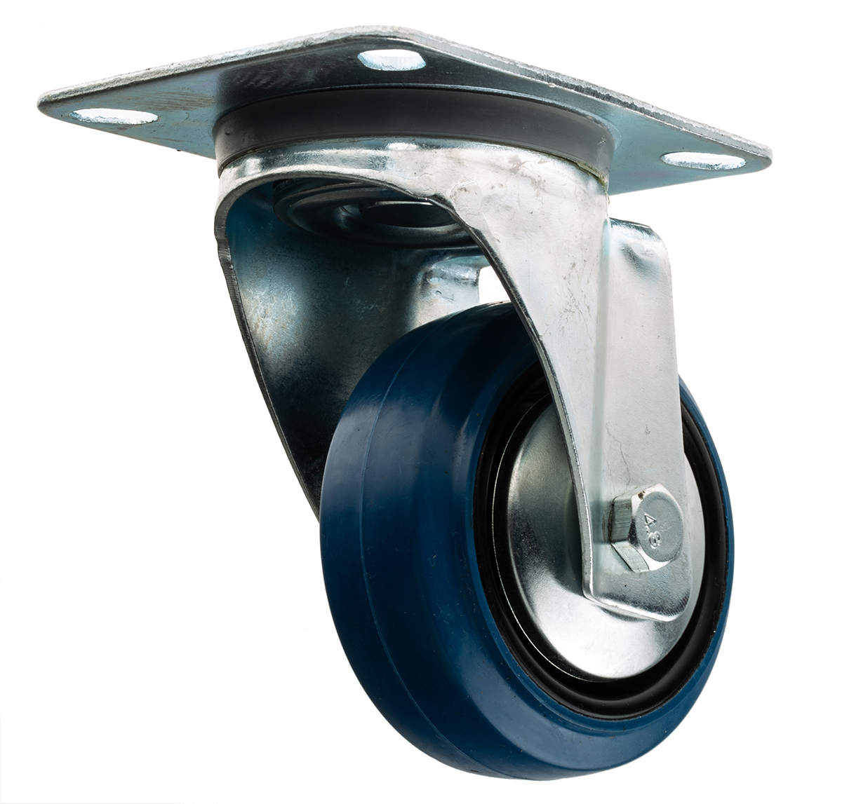 This is Swivel Castor Wheel 80kg Load Capacity 80mm Wheel Diameter manufactured by Guitel Hervieu. The manufacturer part number is 1277210. The tyre of the product is made up of rubber material . Moreover, its fixing plate dimensions are 105 x 80mm . It has approximately 9mm fixing hole size . The product is available in plate configuration. It includes brake no . It has a typical 80 x 60mm fixing centres . Moreover, it has 107mm of overall height. It can holds up to 80kg load capacity. The product also features robust zinc plated steel housing material. It is created for medium duty weight class . The product has a plain bore type hub bearing . It has a wheel about 32mm in width . Its wheel diameter is about 80mm . Its hub is made using polyamide material . Allows swivel rotation. Additionally, it includes 4 fixing holes .