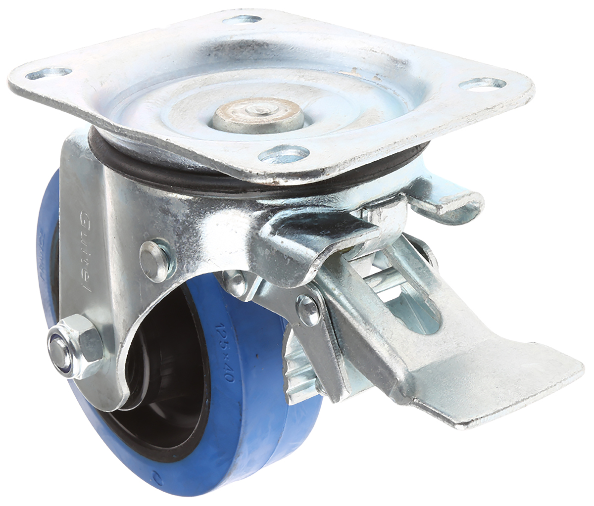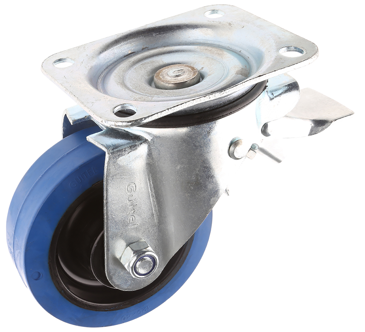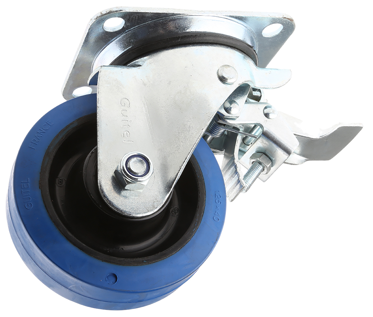 This is Braked Swivel Castor Wheel 300kg Load Capacity 125mm Wheel Diameter manufactured by Guitel Hervieu. The manufacturer part number is 13817222. The tyre of the product is made up of rubber material . Moreover, its fixing plate dimensions are 135 x 110mm . It has approximately 11mm fixing hole size . The product is available in plate configuration. It includes brake yes . It has a typical 105 x 80mm fixing centres . Moreover, it has 161mm of overall height. It can holds up to 300kg load capacity. The product also features robust zinc plated steel housing material. It is created for heavy duty weight class . The product has a roller bearing type hub bearing . It has a wheel about 42mm in width . Its wheel diameter is about 125mm . Its hub is made using polyamide material . Allows braked swivel rotation. Additionally, it includes 4 fixing holes .