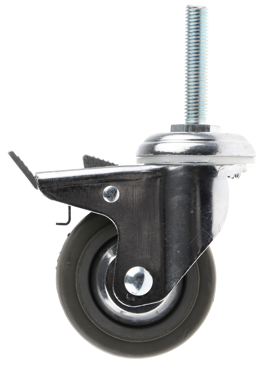 This is Swivel Castor Wheel 70daN Load Capacity 80mm Wheel Diameter manufactured by Guitel Hervieu. The manufacturer part number is 155301420. The tyre of the product is made up of rubber material . The product is available in threaded stem configuration. It includes brake yes . Moreover, it has 110mm of overall height. It can holds up to 70kg load capacity. The product also features robust chrome plated steel housing material. It is created for medium duty weight class . The product has a ball bearing type hub bearing . It has a wheel about 25mm in width . Its wheel diameter is about 80mm . Its hub is made using polypropylene material . Allows braked swivel rotation.