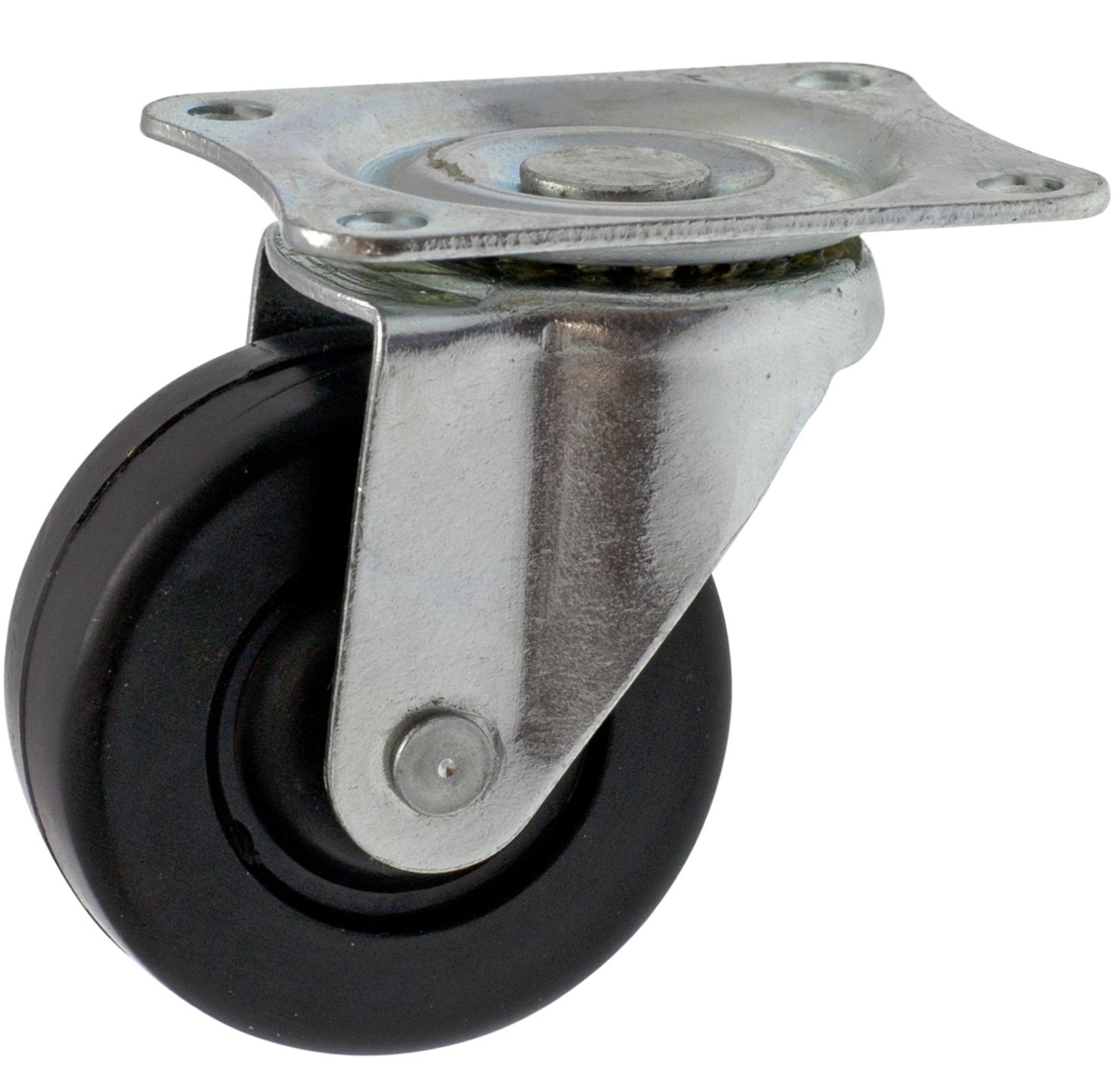 This is Castor Wheel 35kg Capacity 65mm Wheel manufactured by Guitel Hervieu. The manufacturer part number is 360923. The tyre of the product is made up of rubber material . Moreover, its fixing plate dimensions are 65 x 54mm . It has approximately 7mm fixing hole size . The product is available in plate configuration. It includes brake no . It has a typical 51 x 38mm fixing centres . Moreover, it has 83mm of overall height. It can holds up to 35kg load capacity. The product also features robust plastic housing material. It is created for light duty weight class . The product has a plain bore type hub bearing . It has a wheel about 24mm in width . Its wheel diameter is about 65mm . Its hub is made using polypropylene material . Allows swivel rotation. Additionally, it includes 4 fixing holes .