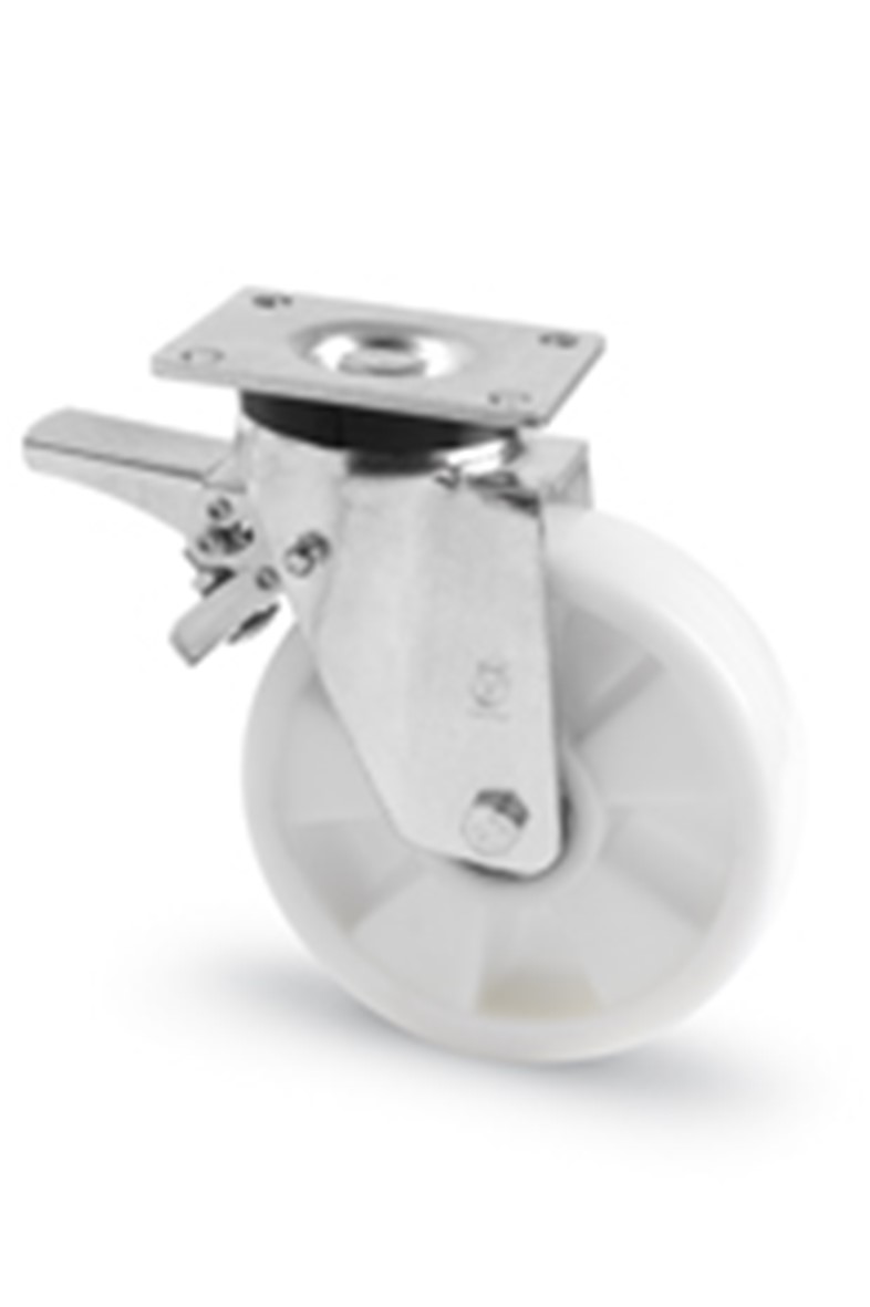 This is Swivel Castor Wheel 800kg Capacity 200mm Wheel manufactured by RS PRO. The manufacturer part number is 149-233. The tyre of the product is made up of nylon material . Moreover, its fixing plate dimensions are 135 x 110mm . The splendid features of the product include corrosion resistant, impact resistant, shock absorbing. The product is available in single bolt configuration. It includes brake yes . It has a typical 105 x 80mm fixing centres . Moreover, it has 251mm of overall height. It can holds up to 800kg load capacity. It is created for heavy duty weight class . Its wheel diameter is about 200mm . Its hub is made using polyamide 6 material . Allows swivel rotation. Additionally, it includes 4 fixing holes .