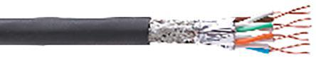 This is Black Cat7 Ethernet Cable PUR 300 V dc 450 V ac manufactured by Belden. The manufacturer part number is 74004PU.00305. Features 23 awg - American Wire Gauge. Additionally, it contains 1 strands. Moreover, this cable has a twisted pair shape. The item is shielded with a s/ftp. Moreover, the product has a nominal 300 v dc, 450 v ac voltage rating. The core strands are 1/23. The sheath has an adorable black colour. Its accurate length is 305m. The product has 0.2 mm² cross section area. Whereas the outer sheath is manufactured from pur material. The strand size includes 23 awg.