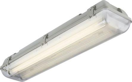 This is 2 x 18 W Fluorescent Ceiling Light Fitting Twin Batten 230 V Linear 2 Lamp Anti-corrosive 665 x 95 x 100 mm manufactured by RS Pro. The manufacturer part number is 712-6944. It is anti-corrosive yes . Its lamp is t8 in size . It is IP rated with ip65. This product carries 2 x 18 w. Moreover, the product has a nominal 230 v voltage rating. Its accurate length is 665 mm. It includes 2 lamp(s) . Furthermore, the product is 95 mm wide. The product comes in 100 mm depth. It is a type of fluorescent lamp. It comes in twin batten configuration.