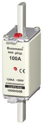 This is 100A 0 NH Centred Tag Fuse gG - gL 500V ac manufactured by Cooper Bussmann. The manufacturer part number is 100NHG0B. The product has a gg - gl application category. The product has a current rating of 100 a. Moreover, the product has a nominal 500 v ac voltage rating. It has an overall length of 125mm. Its tag is 6mm wide . Its body length is 68mm. It integrates a nh fuse type. Its body height is 48mm. The fuse complies with din 43620-1, din 43620-3, iec 60269, vde 0636 standards. Moreover, it has a high rupture capacity yes . Its overall body width is 30mm .
