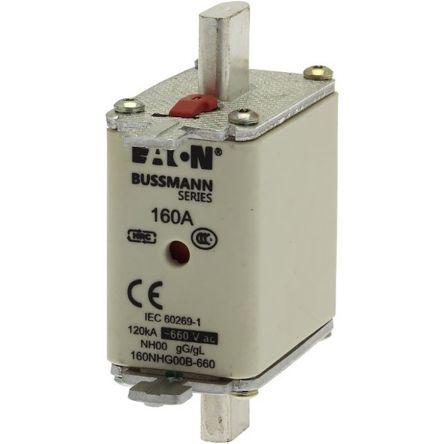 This is NH FUSE 160A 660V GL/GG SIZE 00 DUAL IN manufactured by Cooper Bussmann. The manufacturer part number is 160NHG00B-660. The product has a gg - gl application category. The product has a current rating of 160 a. The fuse dimensions of the product is 47.8 x 29.55 x 49.7mm . Moreover, the product has a nominal 690 v ac voltage rating. The product nhg, is a highly preferred choice for users. A fuse with a 00 size. It has an overall length of 78.5mm. Its body length is 47.8mm. It integrates a nh fuse type. Its body height is 49.7mm. The fuse complies with din 43620, iec 60269 standards. Its overall body width is 29.55mm .