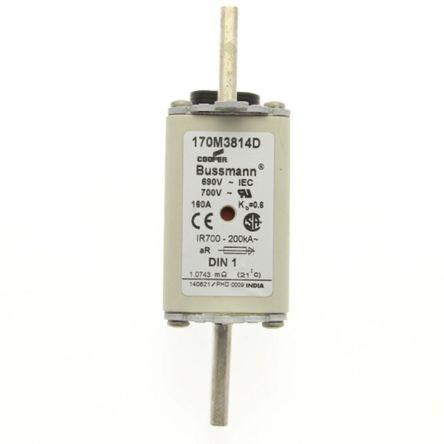This is FUSE 160A 690V aR DIN 1 HSDNH manufactured by Cooper Bussmann. The manufacturer part number is 170M3814D. It has a blade type tag . The product has a ar application category. The product has a current rating of 160 a. The fuse dimensions of the product is 64 x 40 x 68mm . Moreover, the product has a nominal 690 v ac voltage rating. A fuse with a 1 size. It has an overall length of 135mm. Its tag is 20mm wide . Its body length is 64mm. It integrates a hsdi fuse type. Its body height is 68mm. The fuse complies with ce, csa, iec 60269, ul standards. Its overall body width is 40mm .