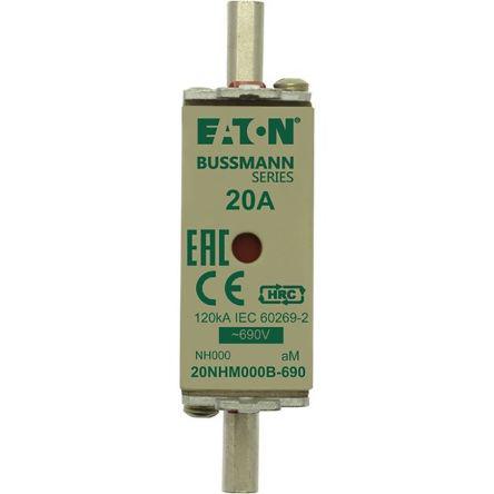 This is 20A 000 NH Centred Tag Fuse aM 690V ac manufactured by Cooper Bussmann. The manufacturer part number is 20NHM000B-690. The product has a am application category. The product has a current rating of 20 a. The fuse dimensions of the product is 41 x 21 x 49.7mm . Moreover, the product has a nominal 690 v ac voltage rating. The product nhm, is a highly preferred choice for users. A fuse with a 000 size. It has an overall length of 78.7mm. Its body length is 41mm. It integrates a nh fuse type. Its body height is 49.7mm. The fuse complies with din 43620, iec 60269 standards. Its overall body width is 21mm .
