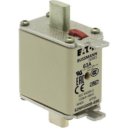 This is 63A 00 NH Centred Tag Fuse gG 500V ac manufactured by Cooper Bussmann. The manufacturer part number is 63NHG00B. The product has a gg application category. The product has a current rating of 63 a. The fuse dimensions of the product is 47.8 x 29.55 x 49.7mm . Moreover, the product has a nominal 500 v ac voltage rating. The product nhg, is a highly preferred choice for users. A fuse with a 00 size. It has an overall length of 78.5mm. Its body length is 47.8mm. It integrates a nh fuse type. Its body height is 49.7mm. The fuse complies with ce, din 43620, iec 60269, vde 0636 standards. Its overall body width is 29.55mm .