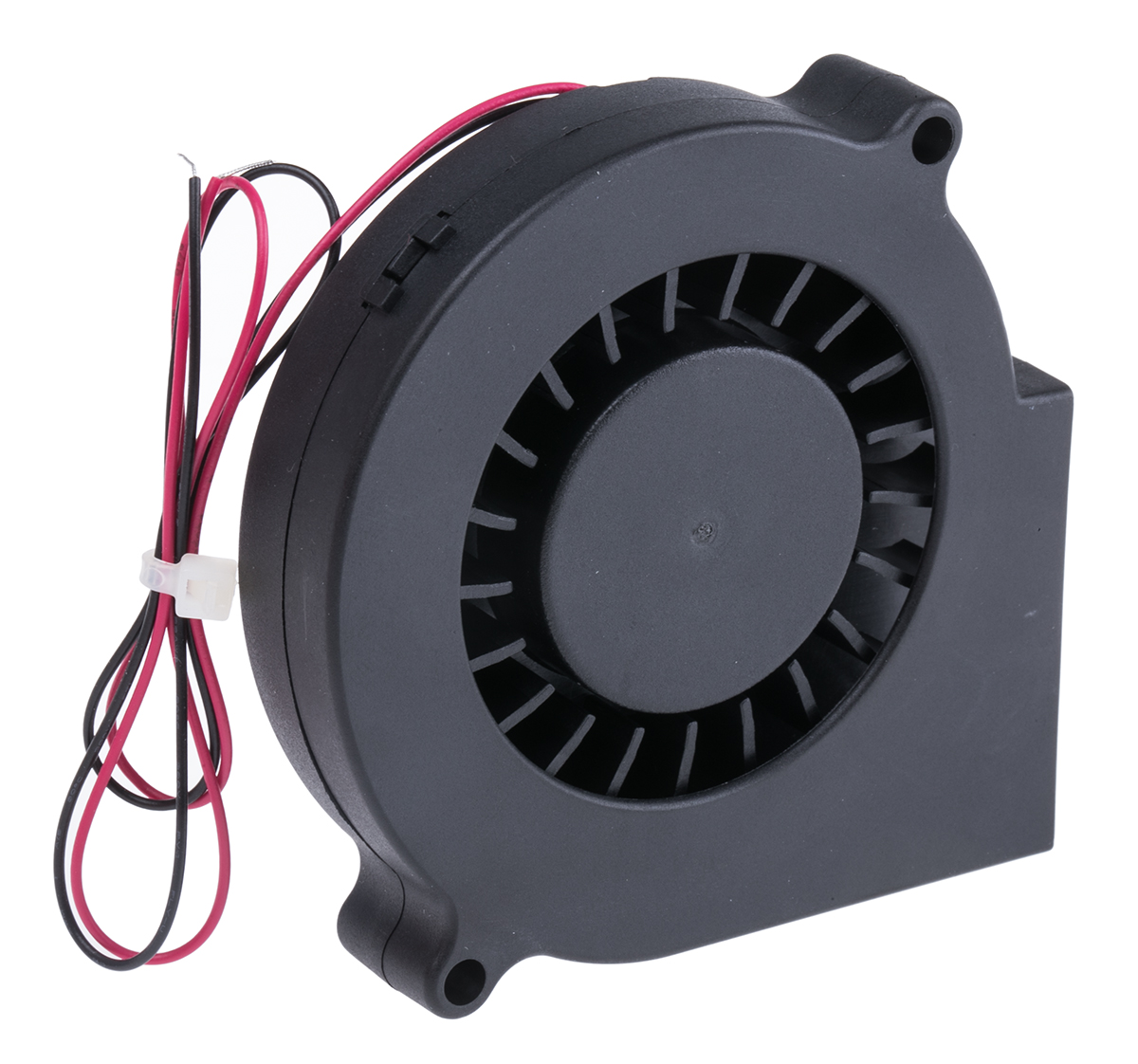 The FW1275-A1041C2AL from CeraDyna is a compact centrifugal fan tailored for space-constrained cooling applications. Measuring just 75 × 75 × 15 mm, it delivers an airflow of 16.58 m³/h with a static pressure of 1.09 inH₂O at a nominal supply of 12 V DC and a current of 550 mA. Its forward-curved impeller and sleeve bearing design balance performance with quiet operation (~51.3 dB) for electronics cooling, communications racks, or compact thermal management systems. Its slim profile enables easy integration in tight enclosures or instrument panels.