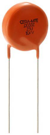 This is Single Layer Ceramic Capacitor SLCC 100pF 10kV dc ±20% X5F Dielectric 615R Series Through Hole manufactured by Vishay. The manufacturer part number is 615R100GAT10. Its diameter is 17.3mm. The given dimensions of the product include 17.3 (dia.) x 9.4 (d)mm. The product is available in through hole configuration. It features a given value of +20% tolerance plus. The product 615r, is a highly preferred choice for users. While it has tolerance minus of -20%. It provides a 100 pf of capacitance value. The product comes in 9.4mm depth. It carries a 10 kv dc of voltage. Whereas, the minimum operating temperature of the product is -25°c. The dielectric options include x5f. It has a maximum operating temperature of +105°c. It features ±20% of tolerance value. The terminal is a radial type.