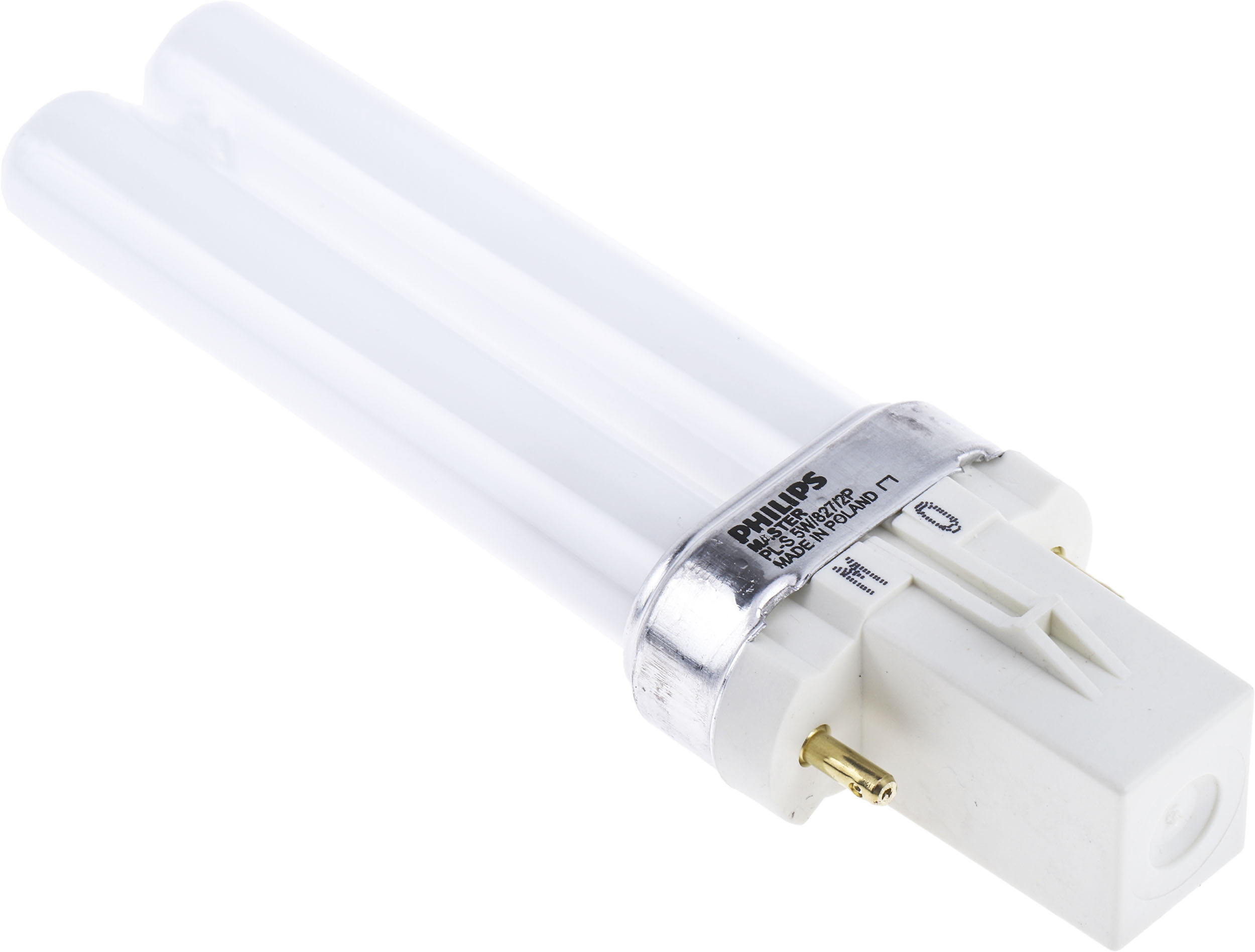 This is 2 pin Non Integrated Compact Fluorescent Bulbs 5 W 2700K Warm White manufactured by Philips Lighting. The manufacturer part number is 5PLS8272PINB. Its diameter is 28mm. Features luminosity up to 250 lm. This product carries 5 w. It includes 827 colour reference . Its accurate length is 105 mm. In addition, it has about 25w incandescent equivalent wattage . The lamp base is g23. It is a twin tube product with unique specifications. This integrates a colour temperature of 2700k. It has about 82 colour rendering . It has 1 loops . Adding to this, it has a long life span for about 10000h. The tone of the colour includes warm white.