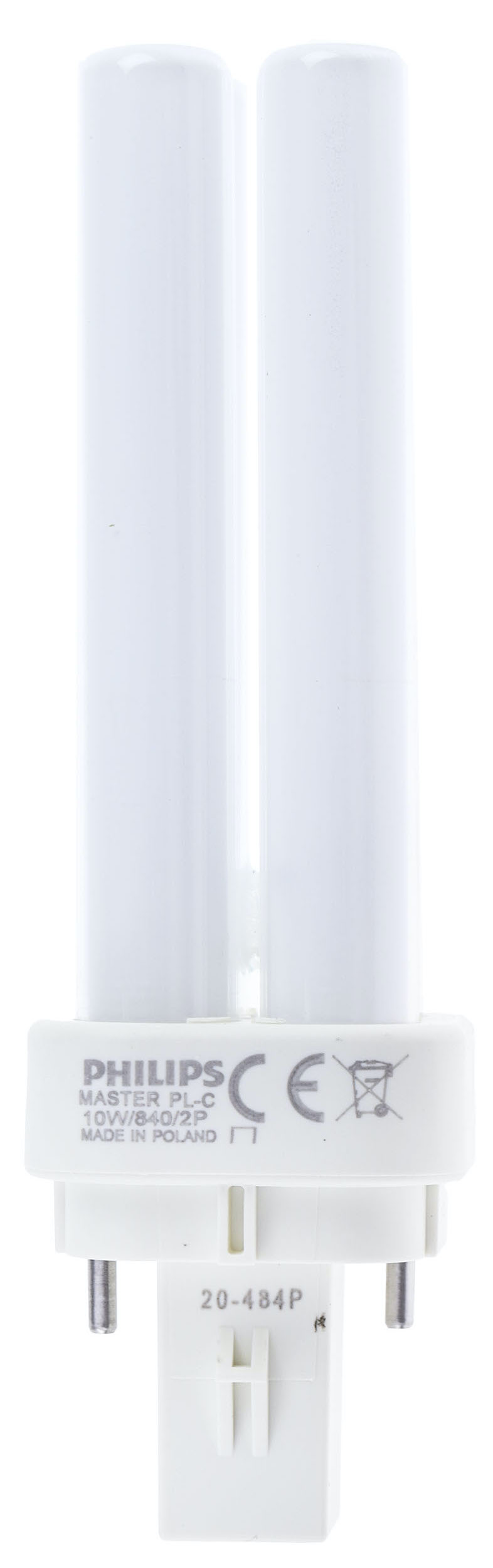 This is 2 pin Non Integrated Compact Fluorescent Bulbs 10 W 4000K Cool White manufactured by Philips Lighting. The manufacturer part number is 10PLC8402PIN. Its diameter is 27mm. Features luminosity up to 600 lm. This product carries 10 w. It includes 840 colour reference . Its accurate length is 116 mm. In addition, it has about 60w incandescent equivalent wattage . The lamp base is g24d-1. It is a quad tube product with unique specifications. This integrates a colour temperature of 4000k. It has about 82 colour rendering . It has 2 loops . Adding to this, it has a long life span for about 10000h. The tone of the colour includes cool white.