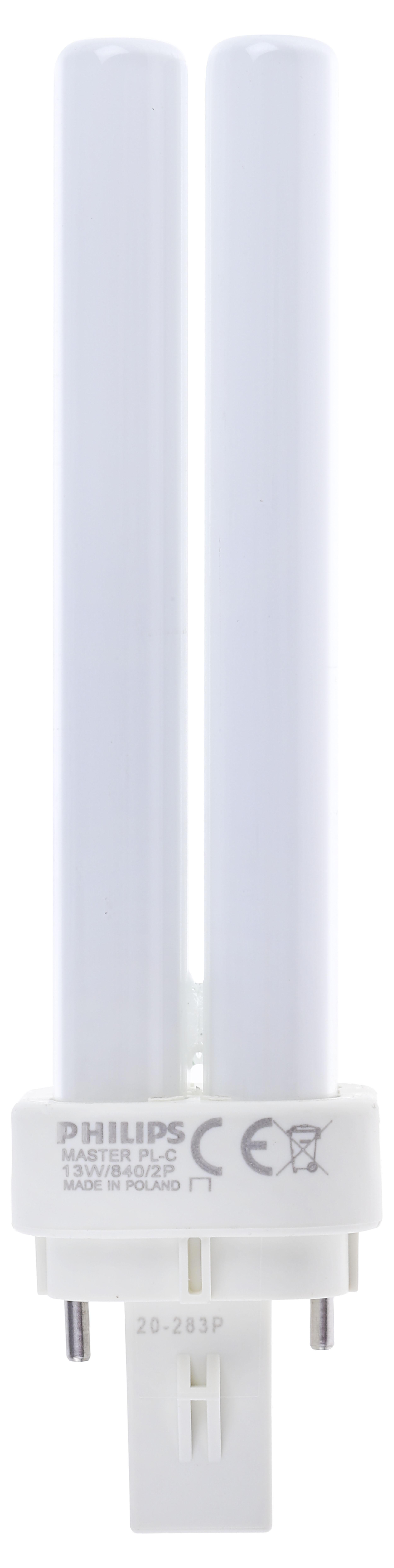 This is 2 Pin Non Integrated Compact Fluorescent Bulbs 13 W 4000K Cool White manufactured by Philips Lighting. The manufacturer part number is 13PLC8402PIN. Its diameter is 27mm. Features luminosity up to 900 lm. This product carries 13 w. It includes 840 colour reference . Its accurate length is 138 mm. In addition, it has about 75w incandescent equivalent wattage . The lamp base is g24d-1. It is a quad tube product with unique specifications. This integrates a colour temperature of 4000k. It has about 82 colour rendering . It has 2 loops . Adding to this, it has a long life span for about 10000h. The tone of the colour includes cool white.