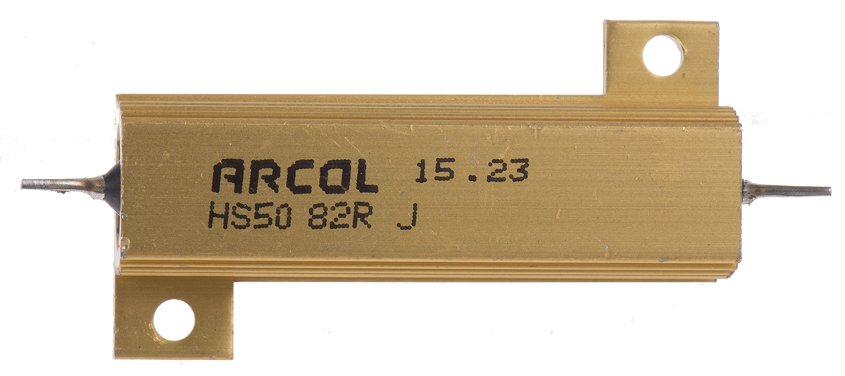 This is HS50 Series Aluminium Housed Axial Wire Wound Panel Mount Resistor 82Ω ±5% 50W manufactured by Arcol. The manufacturer part number is HS50 82R J. It features +100ppm/°c of maximum temperature coefficient. The given dimensions of the product include 14.8 x 72.5 x 29.7mm. The product hs50, is a highly preferred choice for users. It has an overall width of 29.7mm. Moreover, it has axial terminal style. It carries 82ω resistance. It has -100ppm/°c of minimum temperature coefficient. It features ±5% of tolerance value. Whereas, the minimum operating temperature of the product is -55°c. It has an overall length of 72.5mm. Feature 50w of power rating. It has a maximum operating temperature of +200°c. This product use wire wound technology. Moreover, it has 14.8mm of overall height. Concerning its package and casing, it is aluminium housed.