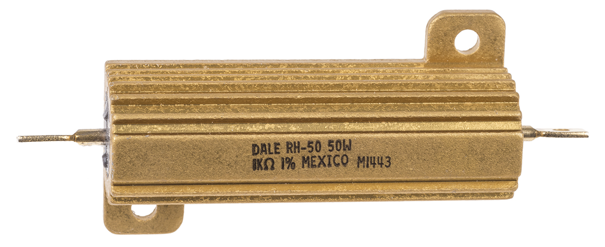 This is RH050 Series Aluminium Housed Axial Wire Wound Panel Mount Resistor 1kΩ ±1% 50W manufactured by Vishay. The manufacturer part number is RH0501K000FE02. It features +20ppm/°c of maximum temperature coefficient. Whereas, the minimum operating temperature of the product is -55°c. The product rh050, is a highly preferred choice for users. Moreover, it has axial terminal style. It carries 1kω resistance. It has -20ppm/°c of minimum temperature coefficient. This product use wire wound technology. Feature 50w of power rating. It has a maximum operating temperature of +250°c. It features ±1% of tolerance value. Concerning its package and casing, it is aluminium housed.