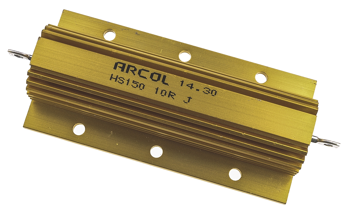 This is HS150 Series Aluminium Housed Axial Wire Wound Panel Mount Resistor 10Ω ±5% 150W manufactured by Arcol. The manufacturer part number is HS150 10R J. It features +100ppm/°c of maximum temperature coefficient. The given dimensions of the product include 24.1 x 121 x 47.5mm. The product hs150, is a highly preferred choice for users. It has an overall width of 47.5mm. Moreover, it has axial terminal style. It carries 10ω resistance. It has -100ppm/°c of minimum temperature coefficient. It features ±5% of tolerance value. It has an overall length of 121mm. Feature 150w of power rating. This product use wire wound technology. Moreover, it has 24.1mm of overall height. Concerning its package and casing, it is aluminium housed.