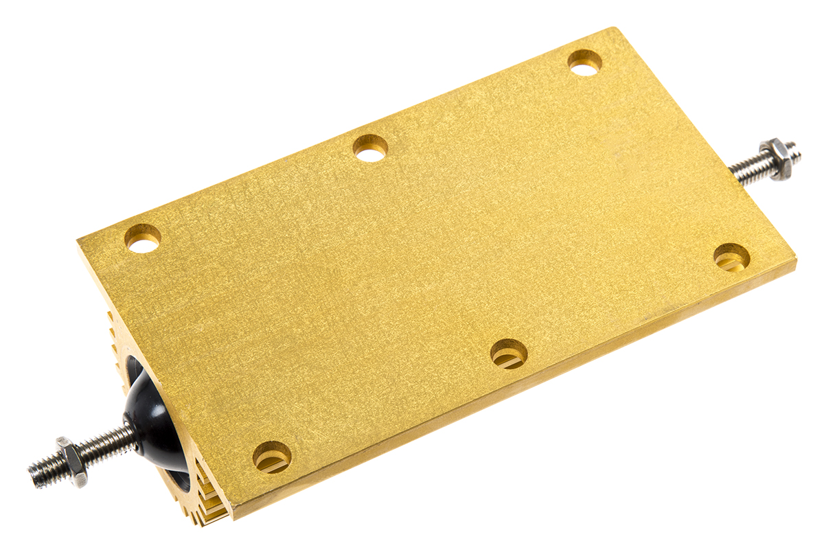 300W Aluminium housed wirewound power resistor, HS Series 300Watt Aluminium housed power resistors which are manufactured to be compliant with the requirements of a MIL 18546, IEC 115 and are RoHS compliant. Compact size for Power rating Winding construction maximises High Pulse Capability Power At 25°C 300W with 0.6°C/W Heatsink, 75W without Heatsink Resistance Tolerance ±5% Temperature Coefficient 1KΩ ±25ppm/°C Operating Temperature -55°C → +200°C Limiting Element Voltage 2500Vdc/Vac (rms) Insulating Resistance 10000MΩ Length 184.4 mm Width 72.5 mm Height 41.8 mm Weight 700 g Note To achieve the given maximum performance rating of this power resistor, it is designed to be directly mounted on an appropriately matched heatsink and mounted using a thermal compound.