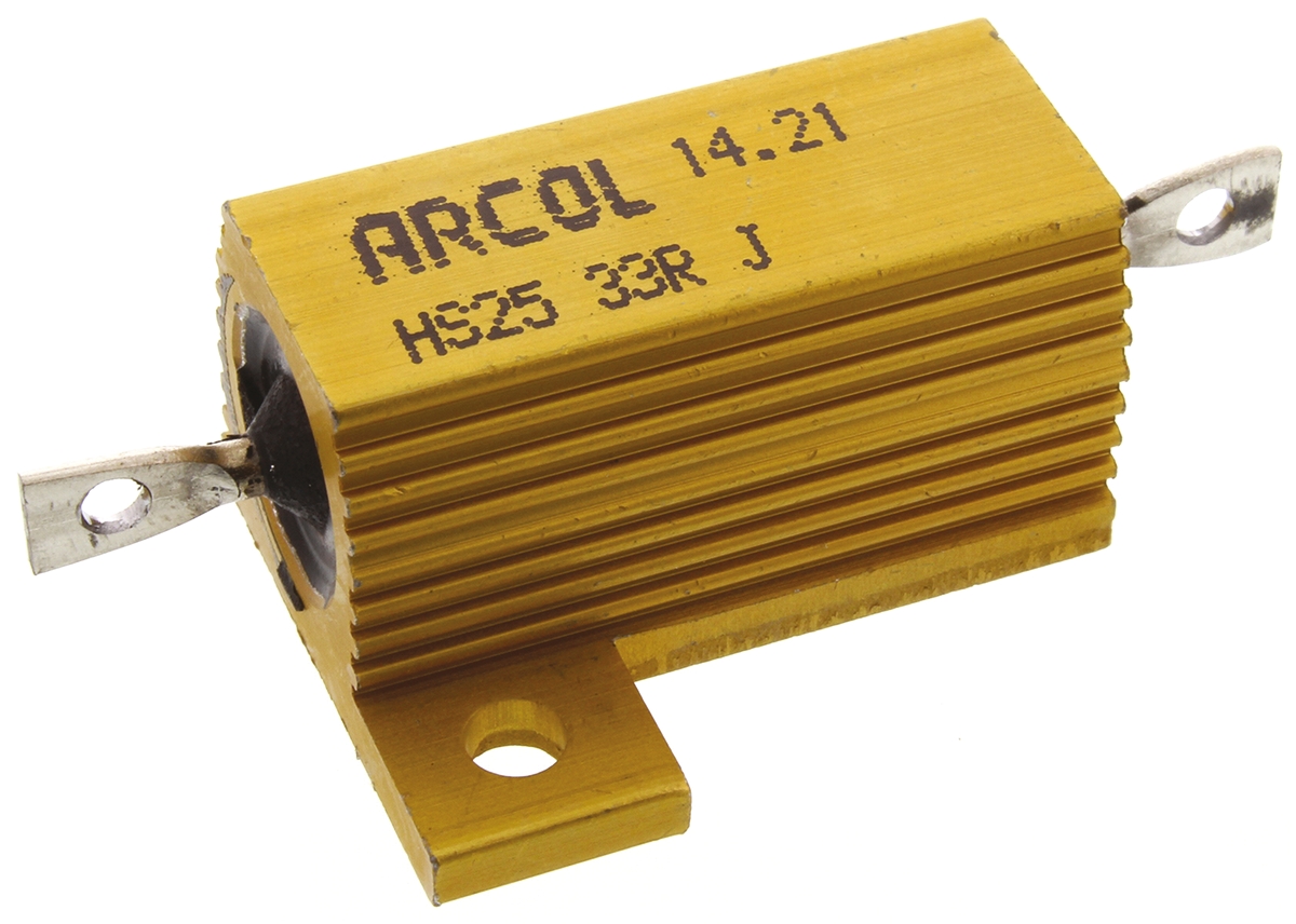 This is HS25 Series Aluminium Housed Axial Wire Wound Panel Mount Resistor 33Ω ±5% 25W manufactured by Arcol. The manufacturer part number is HS25 33R J. It features +100ppm/°c of maximum temperature coefficient. The given dimensions of the product include 14.6 x 51 x 28mm. The product hs25, is a highly preferred choice for users. It has an overall width of 28mm. Moreover, it has axial terminal style. It carries 33ω resistance. It has -100ppm/°c of minimum temperature coefficient. It features ±5% of tolerance value. It has an overall length of 51mm. Feature 25w of power rating. This product use wire wound technology. Moreover, it has 14.6mm of overall height. Concerning its package and casing, it is aluminium housed.