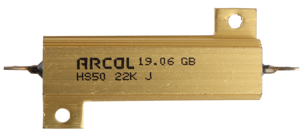 This is HS50 Series Aluminium Housed Axial Wire Wound Panel Mount Resistor 22kΩ ±5% 50W manufactured by Arcol. The manufacturer part number is HS50 22K J. It features +25ppm/°c of maximum temperature coefficient. The given dimensions of the product include 14.8 x 72.5 x 29.7mm. The product hs50, is a highly preferred choice for users. It has an overall width of 29.7mm. Moreover, it has axial terminal style. It carries 22kω resistance. It has -25ppm/°c of minimum temperature coefficient. It features ±5% of tolerance value. It has an overall length of 72.5mm. Feature 50w of power rating. This product use wire wound technology. Moreover, it has 14.8mm of overall height. Concerning its package and casing, it is aluminium housed.