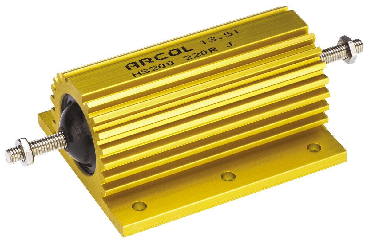 This is HS200 Series Aluminium Housed Axial Wire Wound Panel Mount Resistor 220Ω ±5% 200W manufactured by Arcol. The manufacturer part number is HS200 220R J. It features +100ppm/°c of maximum temperature coefficient. The given dimensions of the product include 41.8 x 121 x 72.5mm. The product hs200, is a highly preferred choice for users. It has an overall width of 72.5mm. Moreover, it has axial terminal style. It carries 220ω resistance. It has -100ppm/°c of minimum temperature coefficient. It features ±5% of tolerance value. It has an overall length of 121mm. Feature 200w of power rating. This product use wire wound technology. Moreover, it has 41.8mm of overall height. Concerning its package and casing, it is aluminium housed.