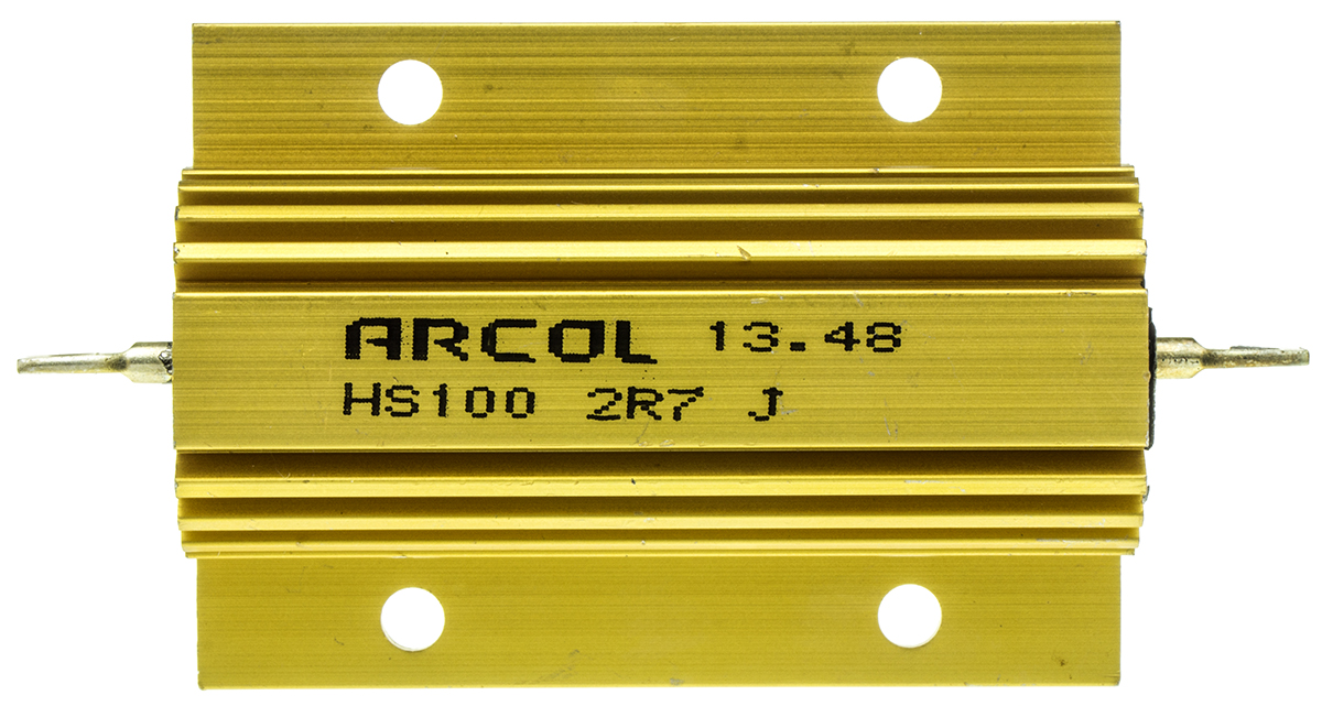 This is HS100 Series Aluminium Housed Axial Wire Wound Panel Mount Resistor 2.7Ω ±5% 100W manufactured by Arcol. The manufacturer part number is HS100 2R7 J. It features +100ppm/°c of maximum temperature coefficient. The given dimensions of the product include 24.1 x 88 x 47.5mm. The product hs100, is a highly preferred choice for users. It has an overall width of 47.5mm. Moreover, it has axial terminal style. It carries 2.7ω resistance. It has -100ppm/°c of minimum temperature coefficient. It features ±5% of tolerance value. Whereas, the minimum operating temperature of the product is -55°c. It has an overall length of 88mm. Feature 100w of power rating. It has a maximum operating temperature of +200°c. This product use wire wound technology. Moreover, it has 24.1mm of overall height. Concerning its package and casing, it is aluminium housed.