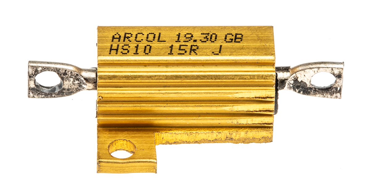 This is HS10 Series Aluminium Housed Axial Wire Wound Panel Mount Resistor 15Ω ±5% 10W manufactured by Arcol. The manufacturer part number is HS10 15R J. It features +100ppm/°c of maximum temperature coefficient. The given dimensions of the product include 8.8 x 30 x 16.5mm. The product hs10, is a highly preferred choice for users. It has an overall width of 16.5mm. Moreover, it has axial terminal style. It carries 15ω resistance. It has -100ppm/°c of minimum temperature coefficient. It features ±5% of tolerance value. It has an overall length of 30mm. Feature 10w of power rating. This product use wire wound technology. Moreover, it has 8.8mm of overall height. Concerning its package and casing, it is aluminium housed.