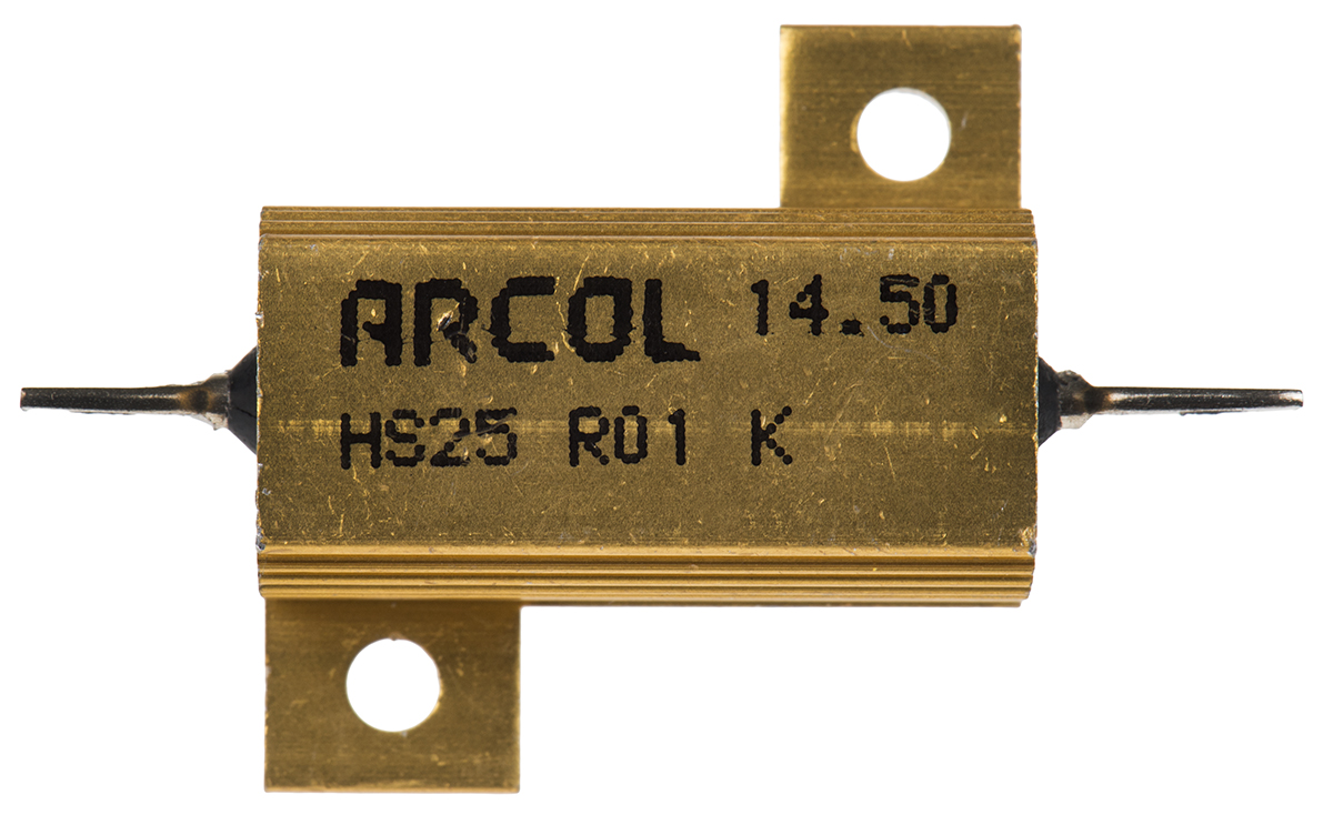 This is HS25 Series Aluminium Housed Axial Wire Wound Panel Mount Resistor 10mΩ ±10% 25W manufactured by Arcol. The manufacturer part number is HS25 R01 K. It features +100ppm/°c of maximum temperature coefficient. The given dimensions of the product include 14.6 x 51 x 28mm. The product hs25, is a highly preferred choice for users. It has an overall width of 28mm. Moreover, it has axial terminal style. It carries 10mω resistance. It has -100ppm/°c of minimum temperature coefficient. It features ±10% of tolerance value. It has an overall length of 51mm. Feature 25w of power rating. This product use wire wound technology. Moreover, it has 14.6mm of overall height. Concerning its package and casing, it is aluminium housed.