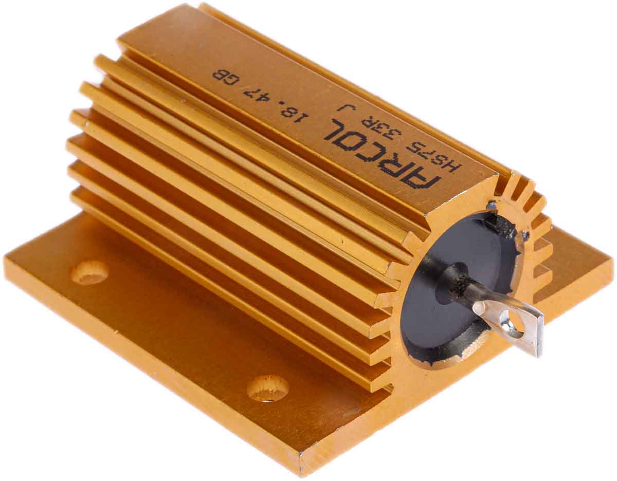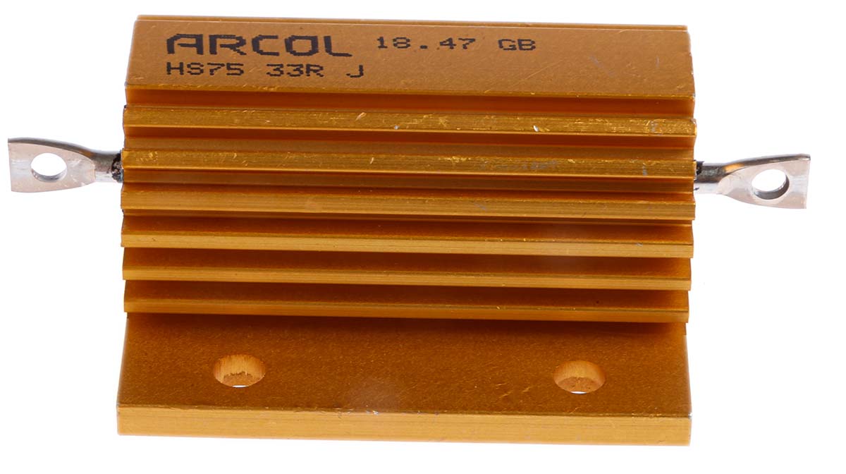 This is HS75 Series Aluminium Housed Axial Wire Wound Panel Mount Resistor 33Ω ±5% 75W manufactured by Arcol. The manufacturer part number is HS75 33R J. It features +100ppm/°c of maximum temperature coefficient. The given dimensions of the product include 24.1 x 72 x 47.5mm. The product hs75, is a highly preferred choice for users. It has an overall width of 47.5mm. Moreover, it has axial terminal style. It carries 33ω resistance. It has -100ppm/°c of minimum temperature coefficient. It features ±5% of tolerance value. It has an overall length of 72mm. Feature 75w of power rating. This product use wire wound technology. Moreover, it has 24.1mm of overall height. Concerning its package and casing, it is aluminium housed.